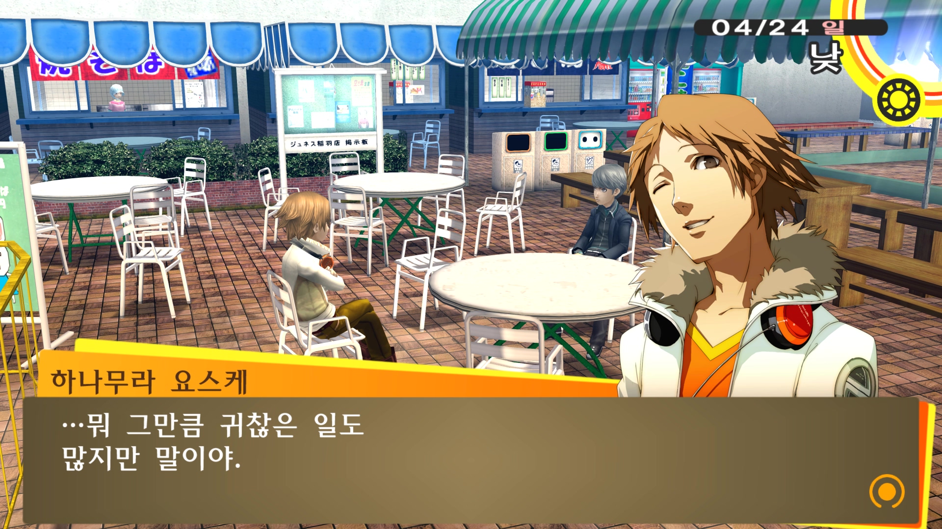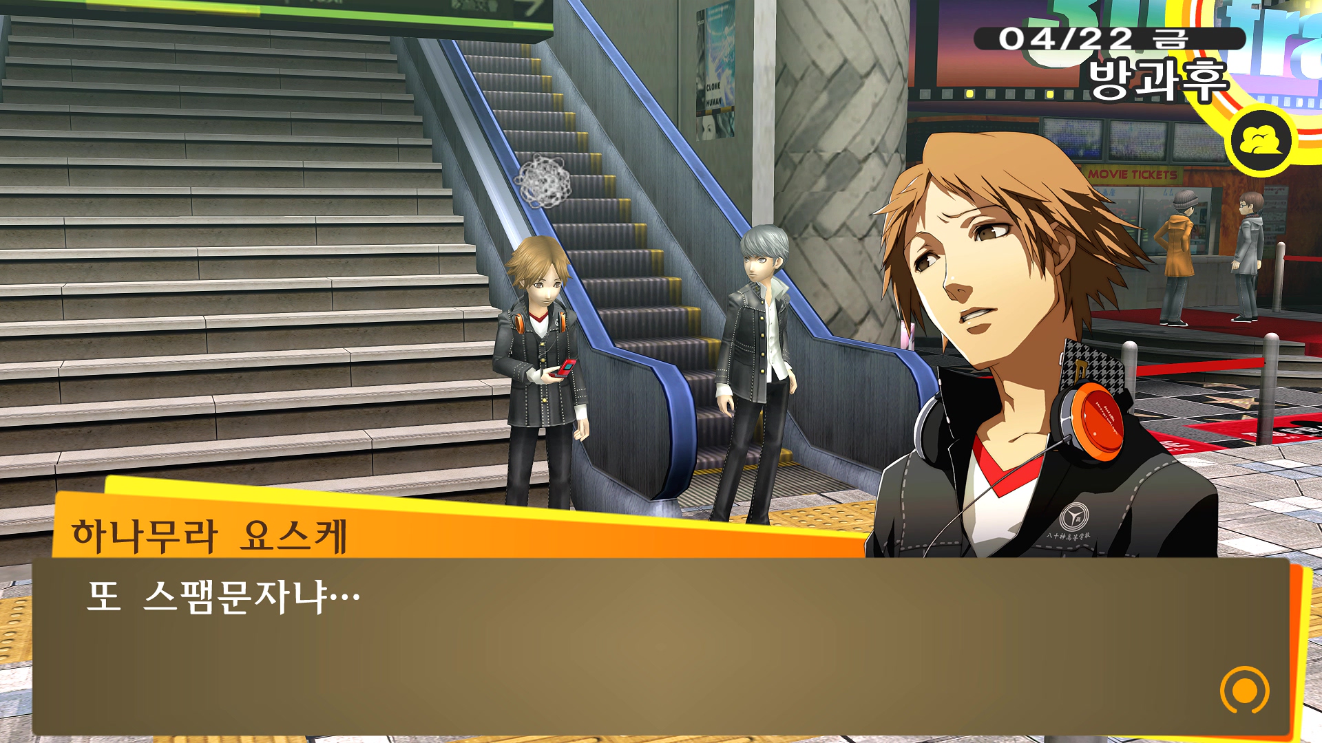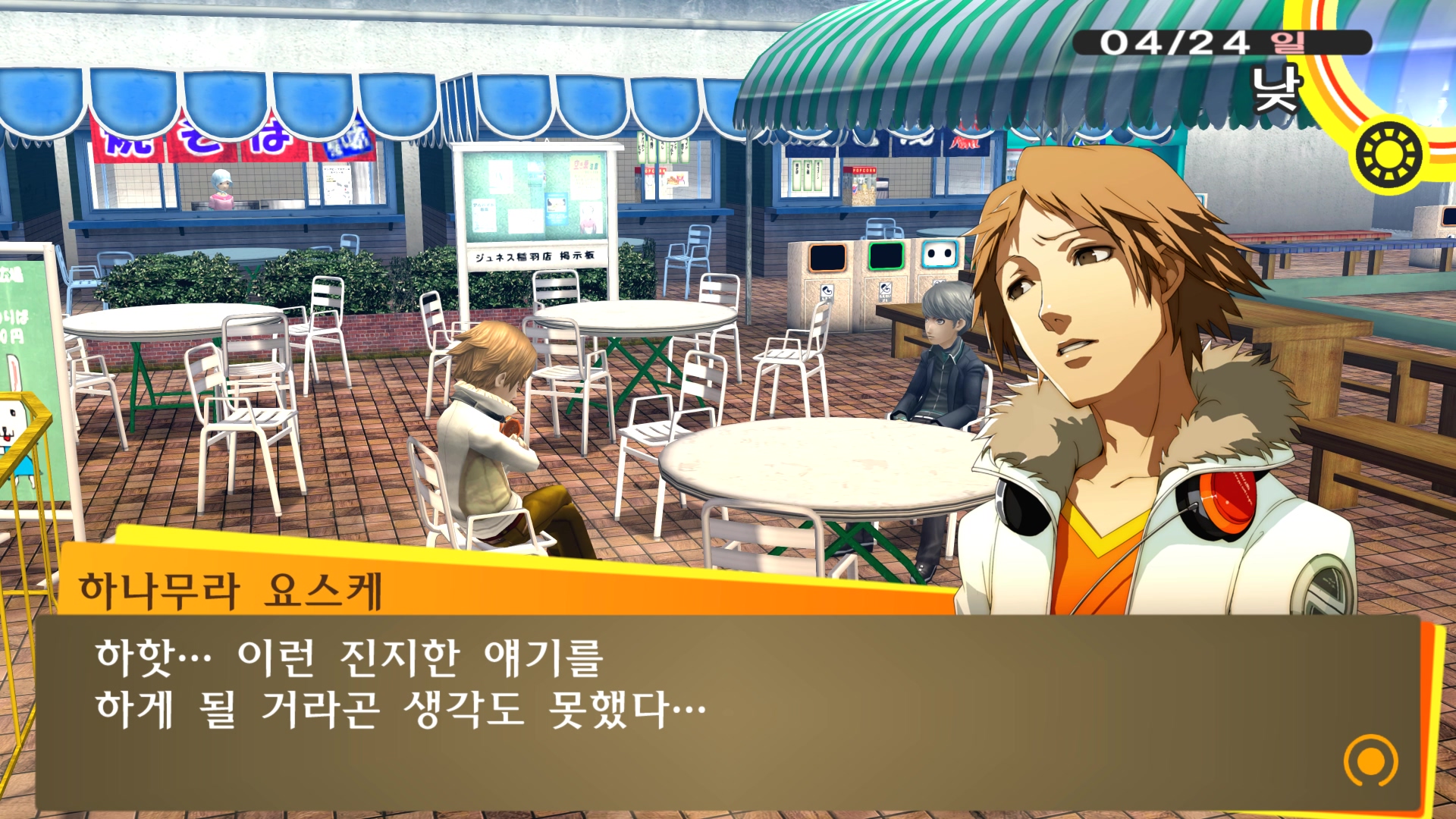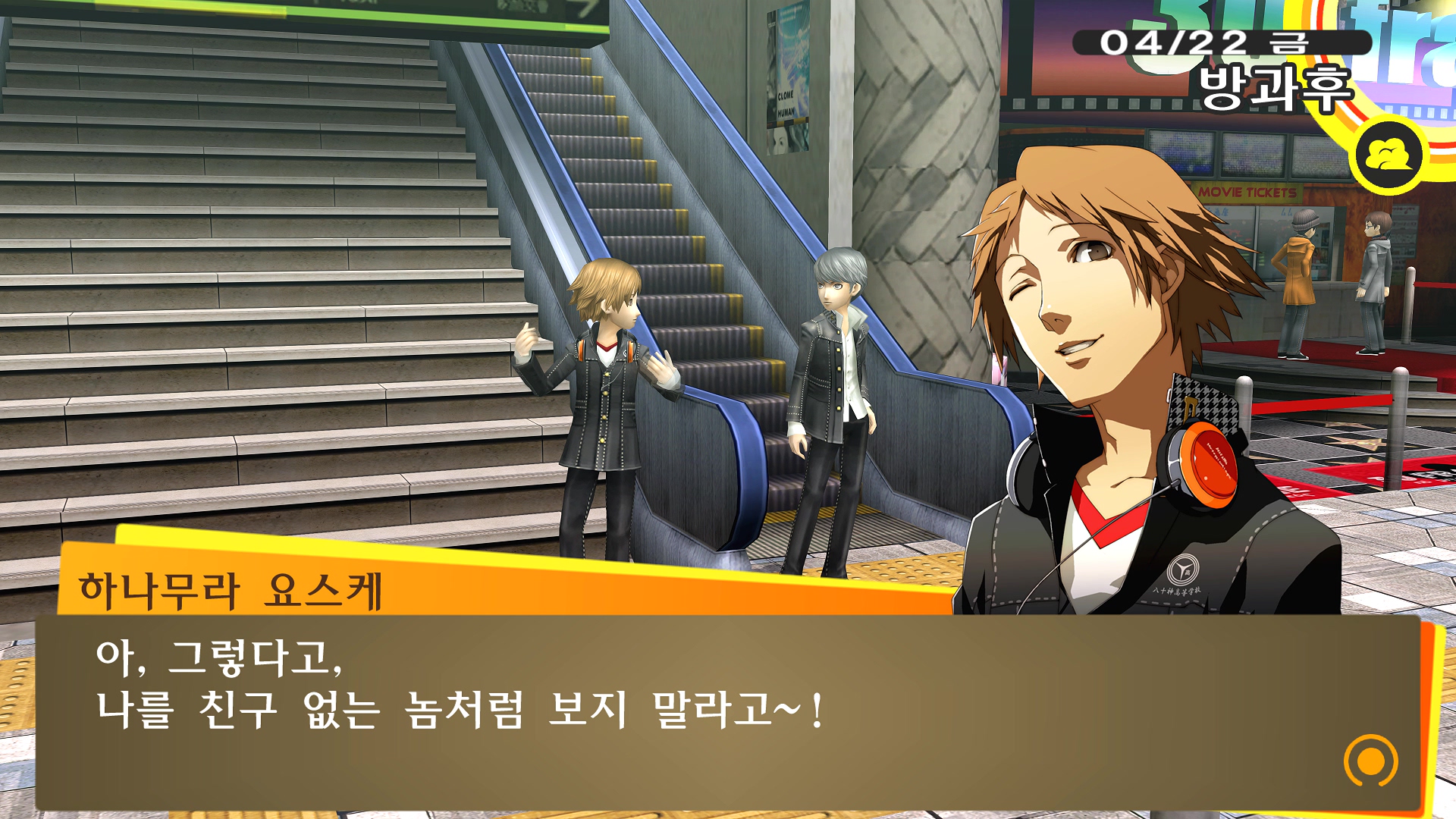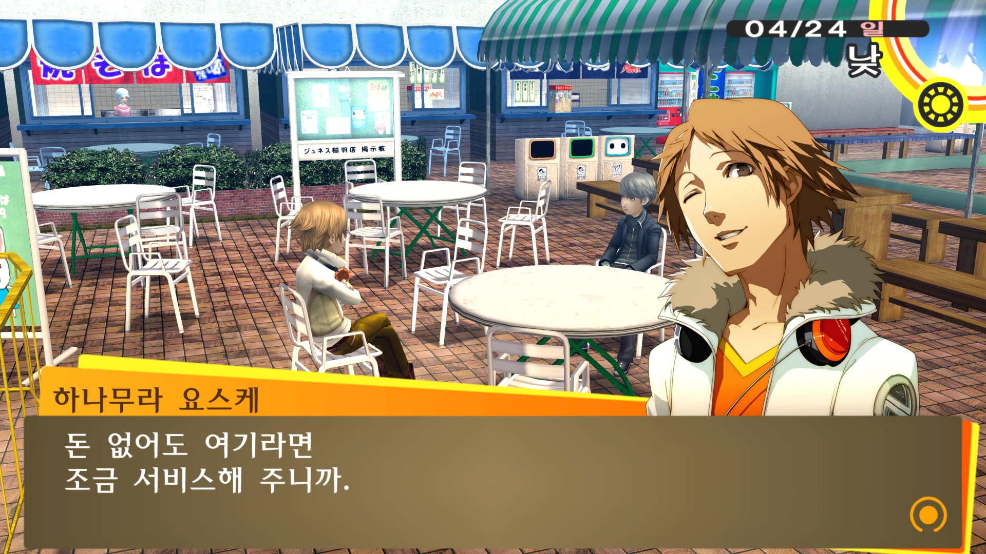 페르소나4에서 진히로인 이라는 농담을 듣고 있는 료스케....