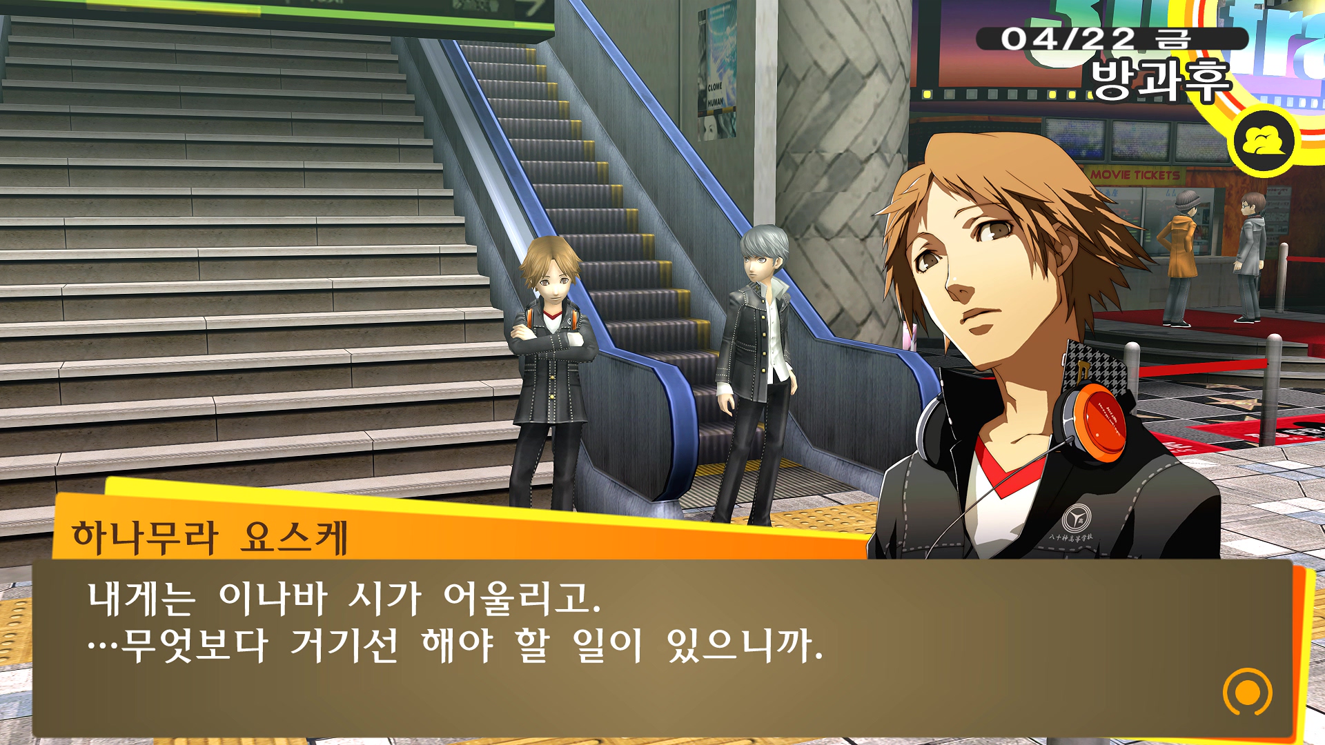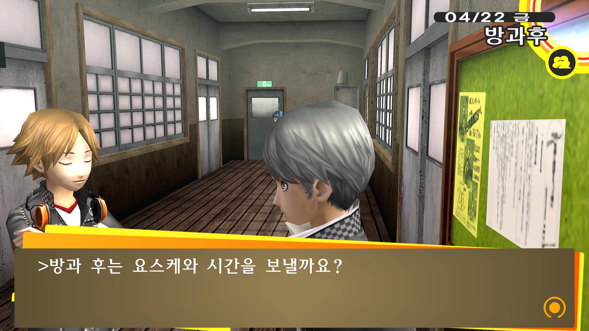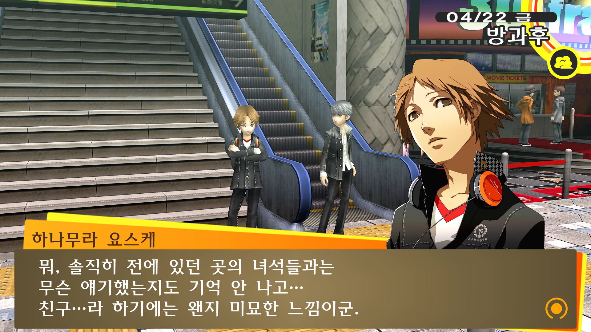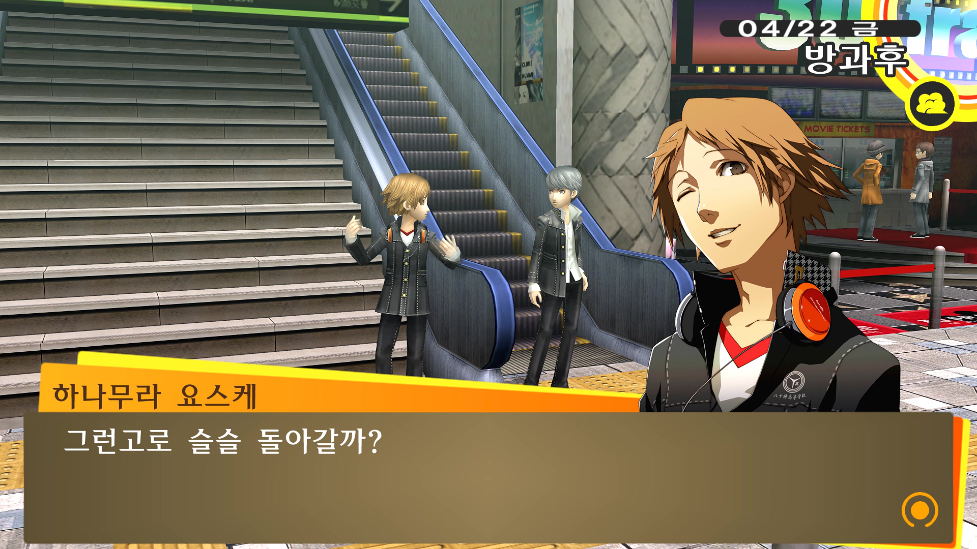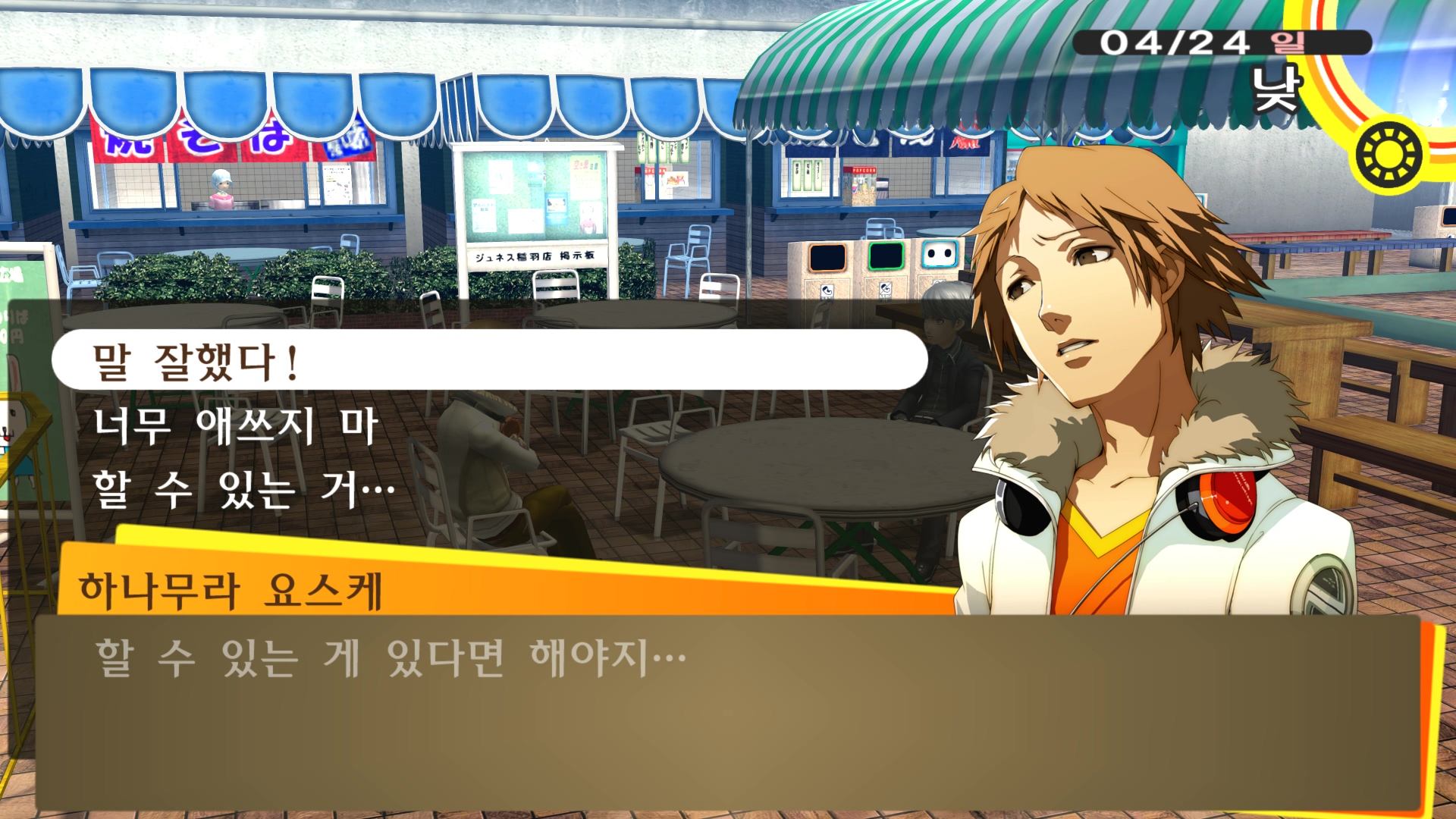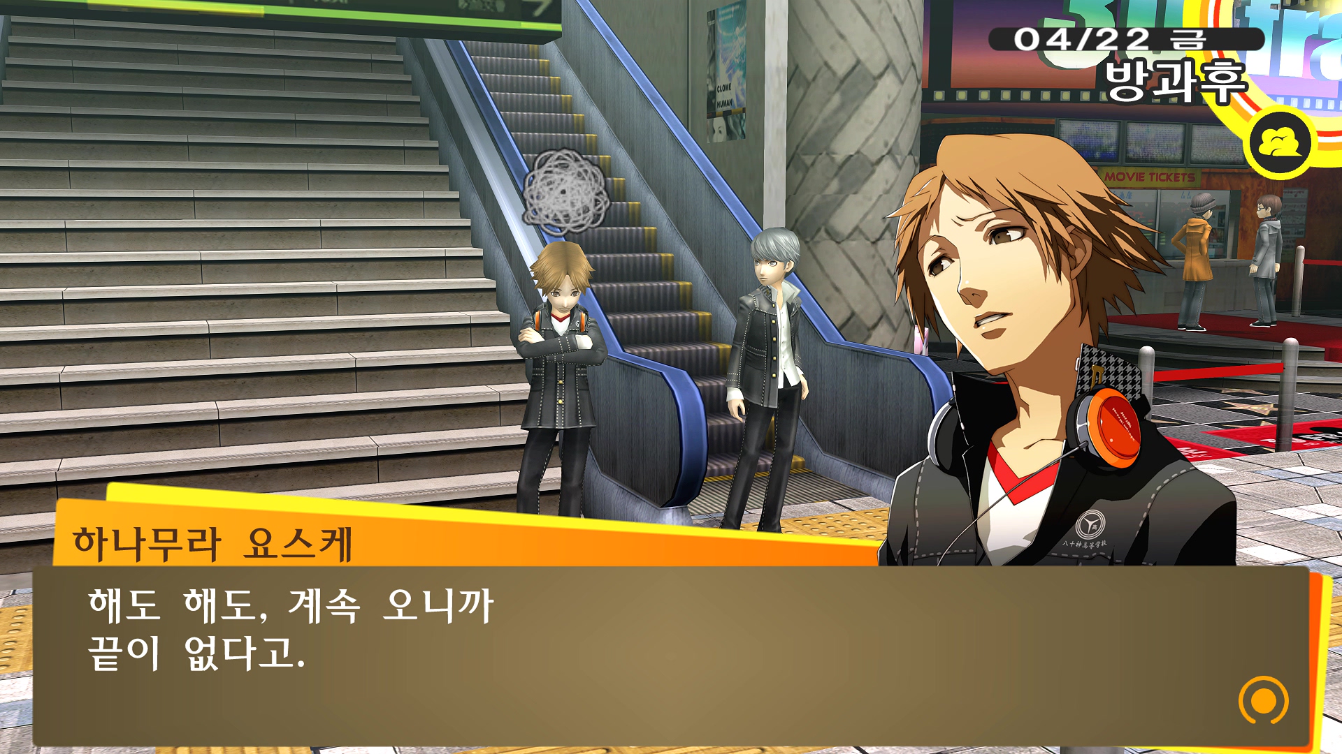 페르소나4에서 진히로인 이라는 농담을 듣고 있는 료스케....