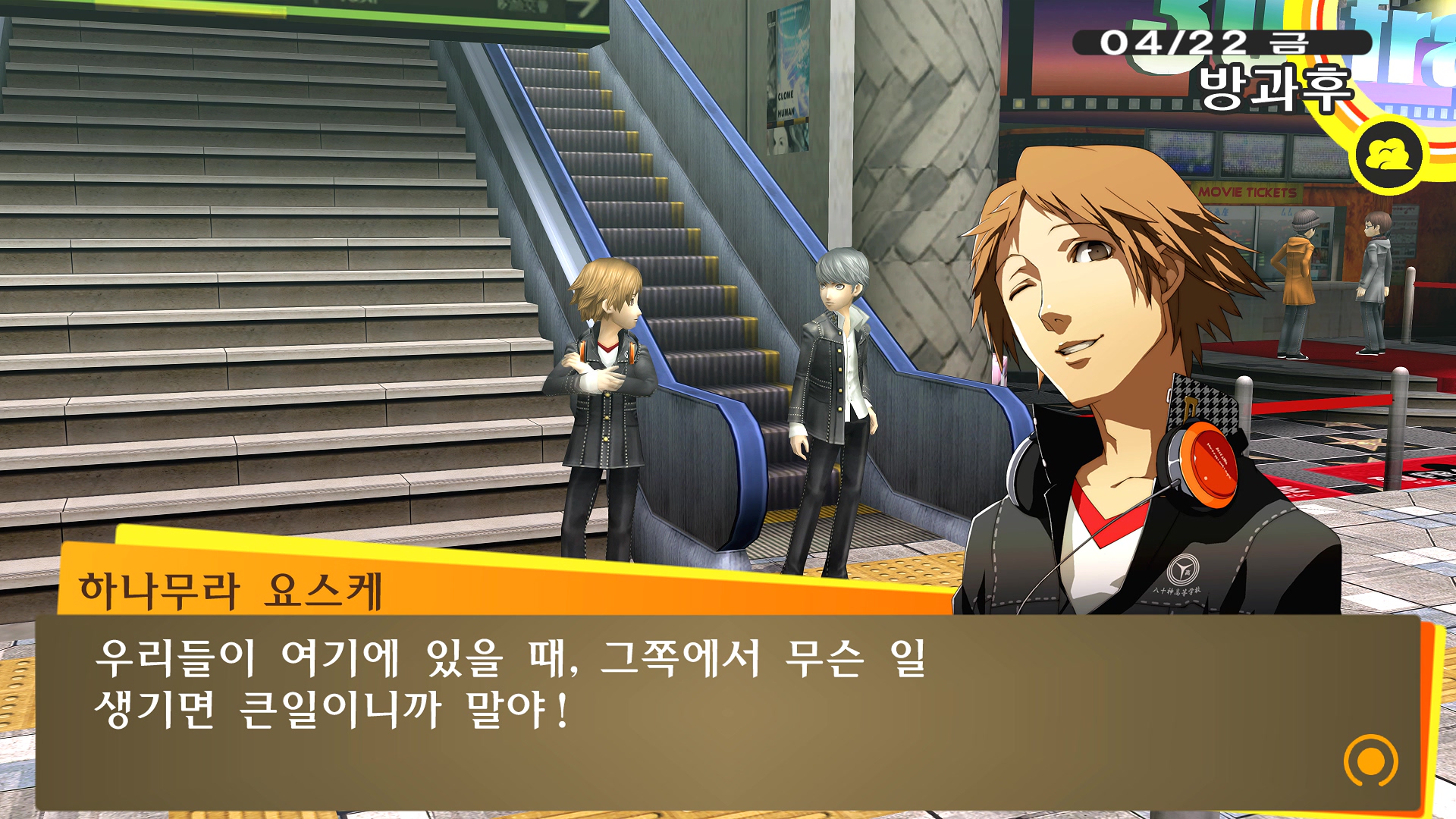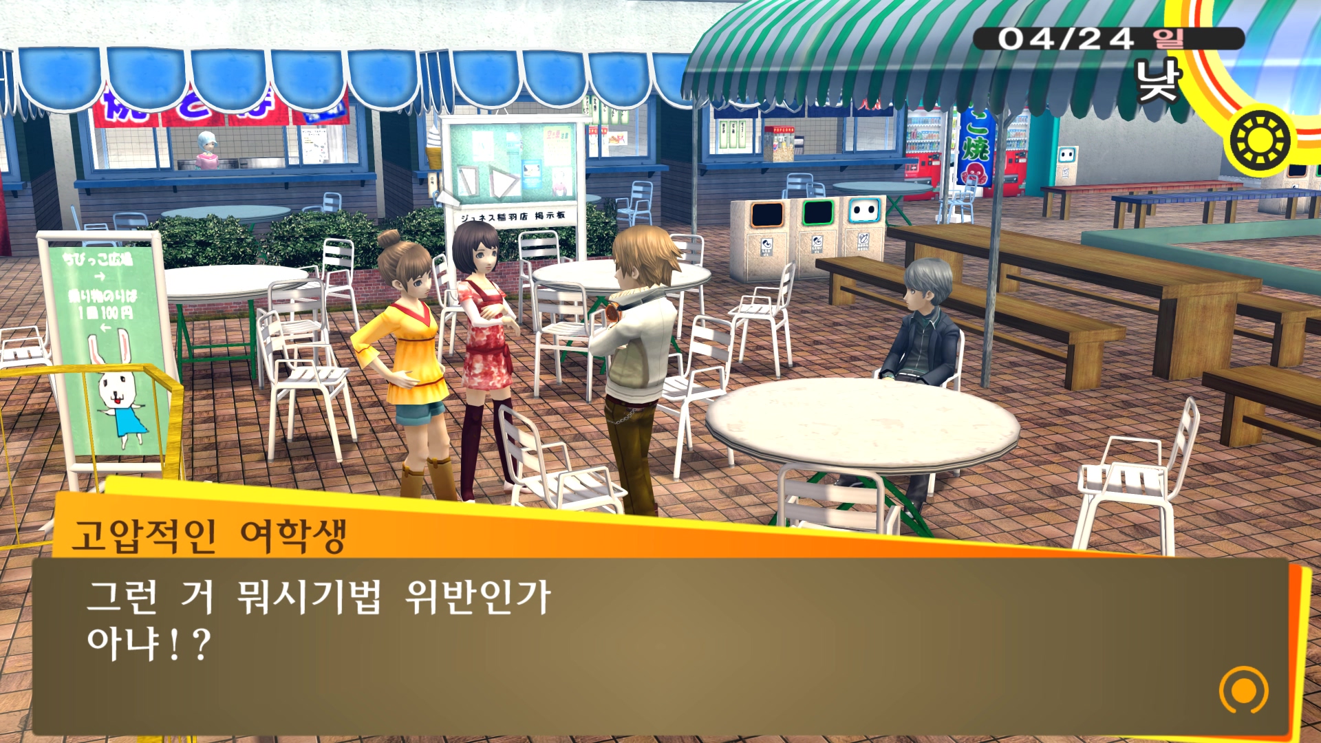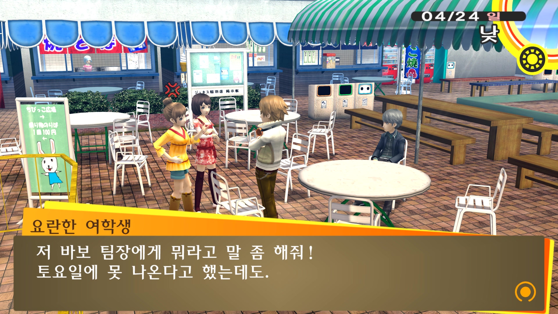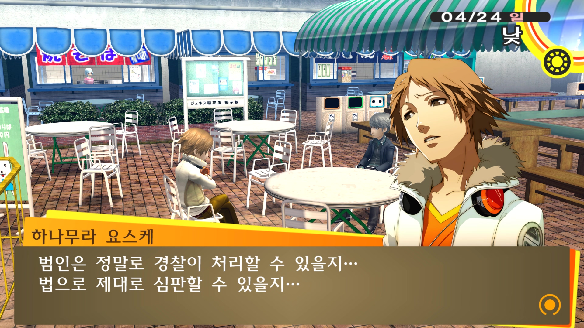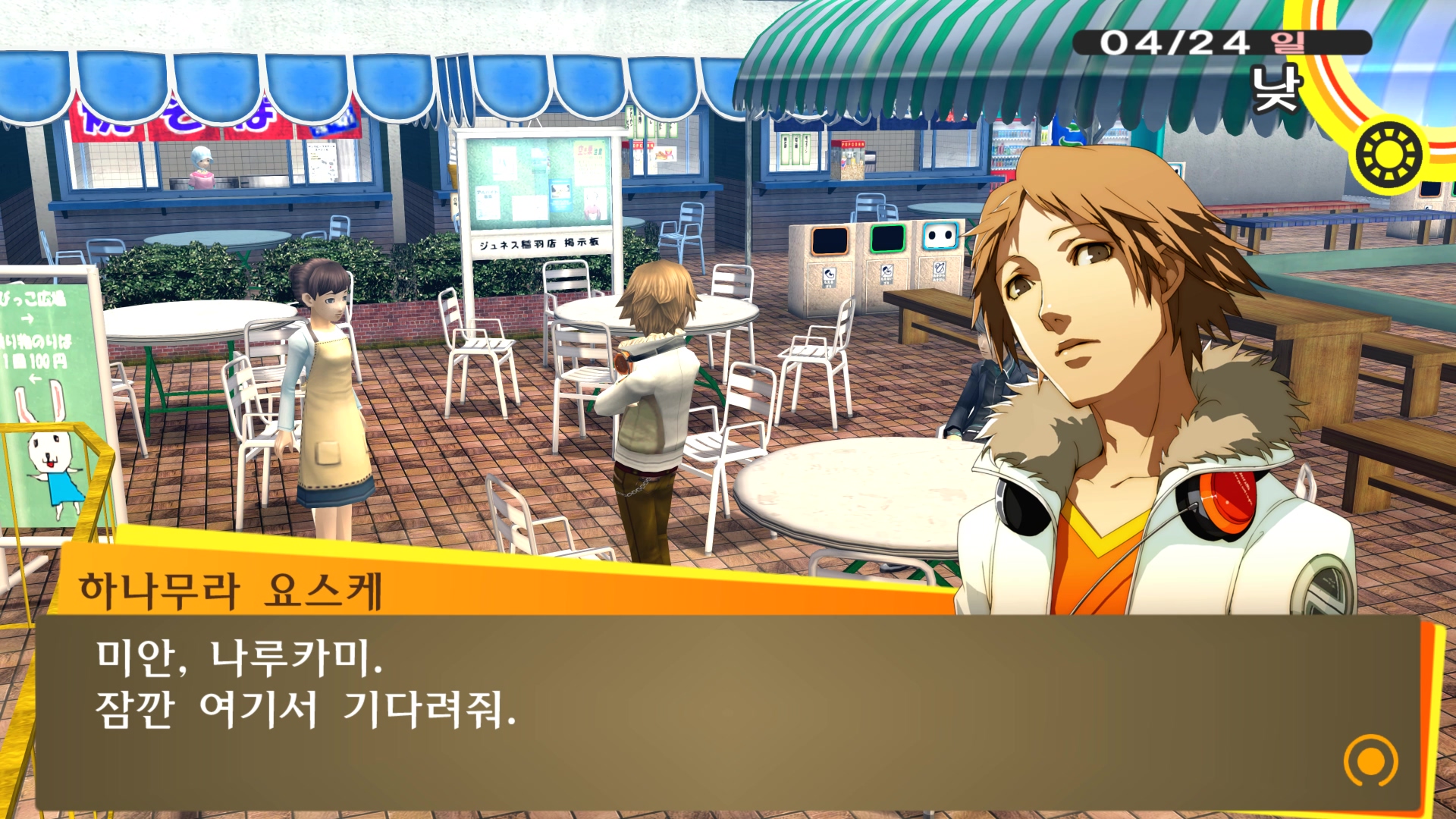 페르소나4에서 진히로인 이라는 농담을 듣고 있는 료스케....