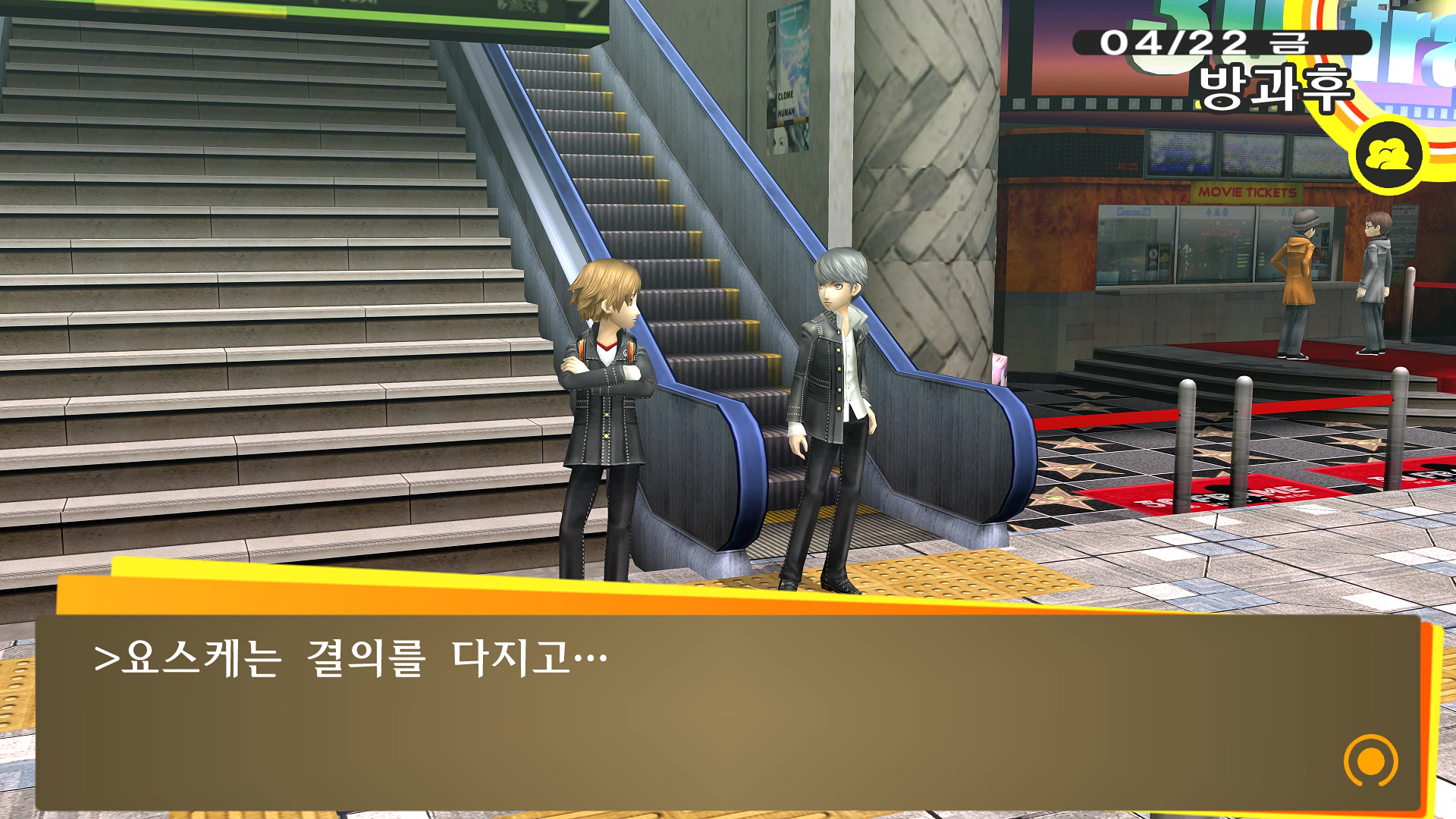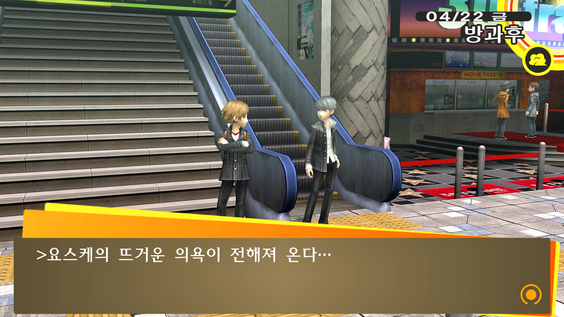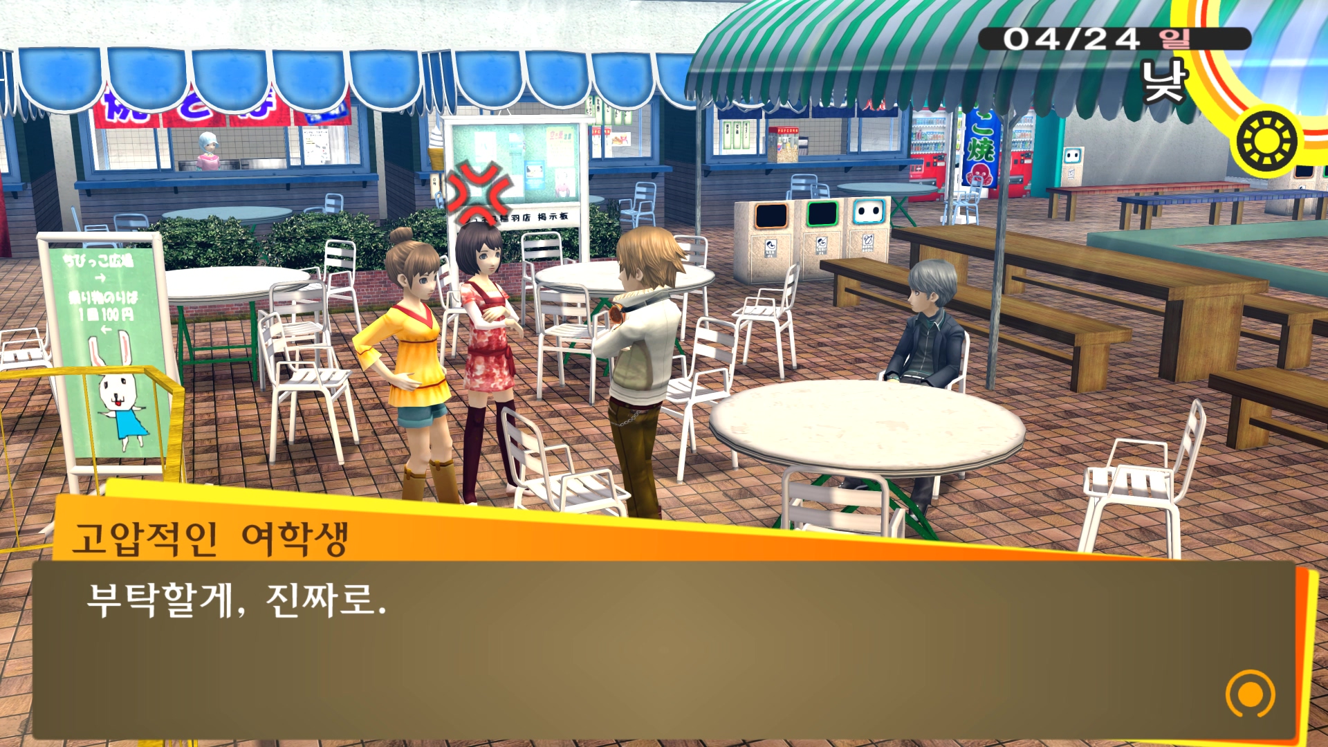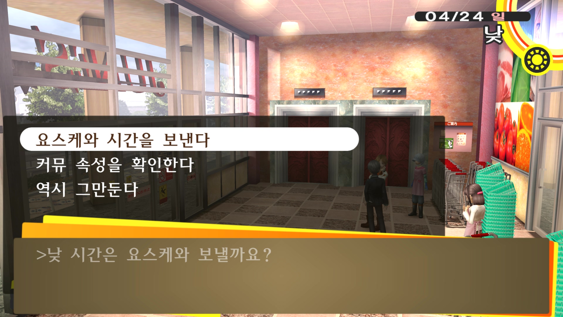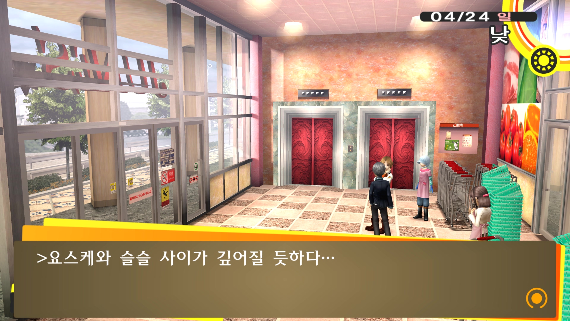 페르소나4에서 진히로인 이라는 농담을 듣고 있는 료스케....