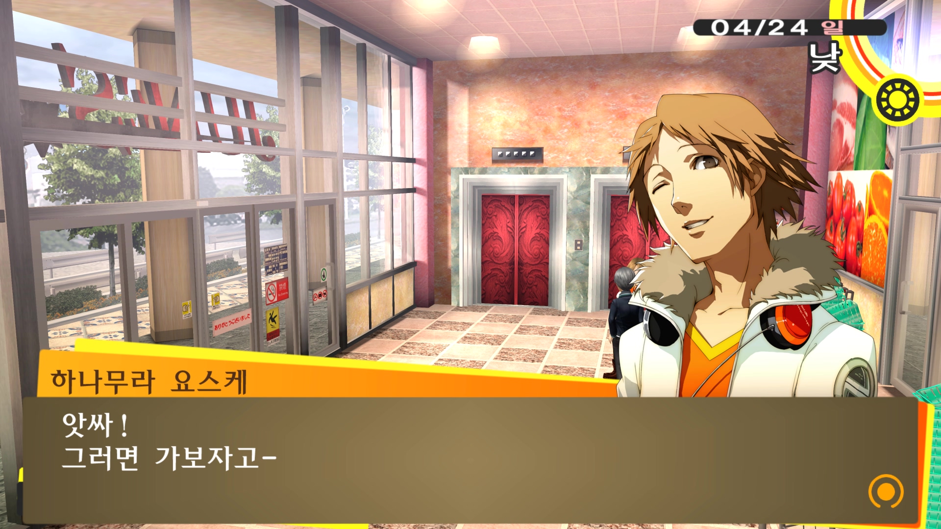 페르소나4에서 진히로인 이라는 농담을 듣고 있는 료스케....