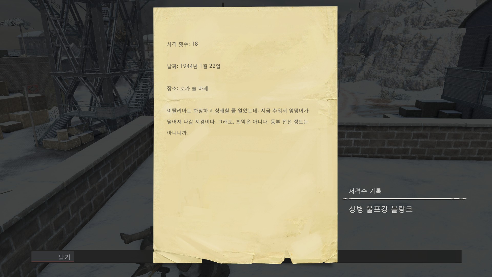 [스나이퍼 엘리트 4] 죽음의 폭풍 1 : 시작 - 스파이 심기, 항해 일지