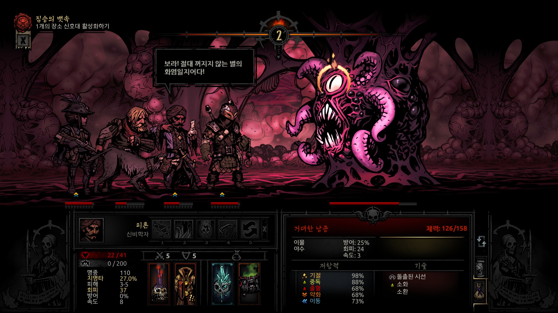 이런 장시간 전투가 필요한 맵은 광역 공격이나 상태이상을 거 영웅을 편성하는것이 좋습니다.
