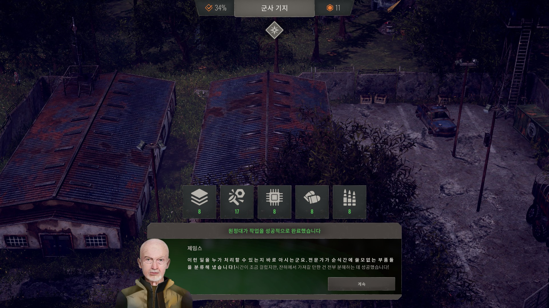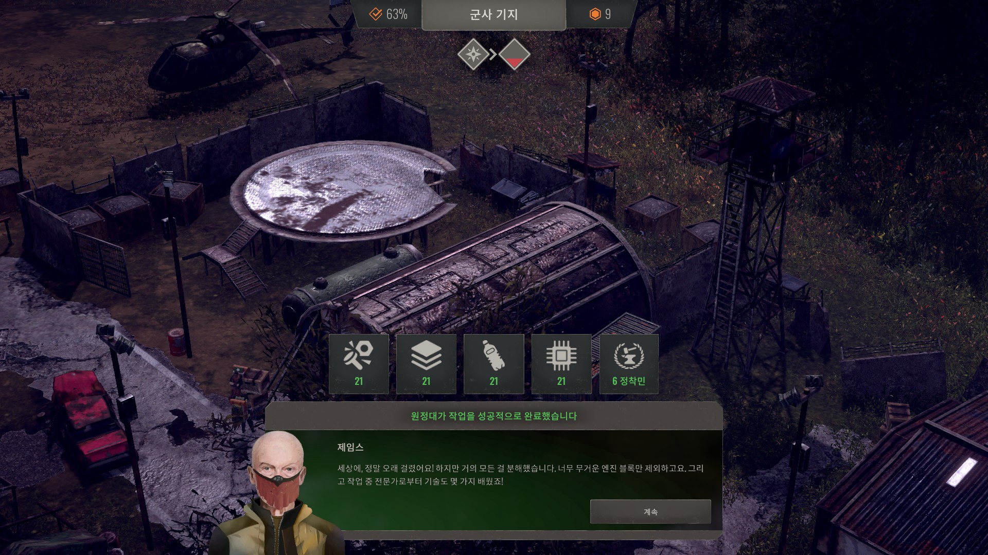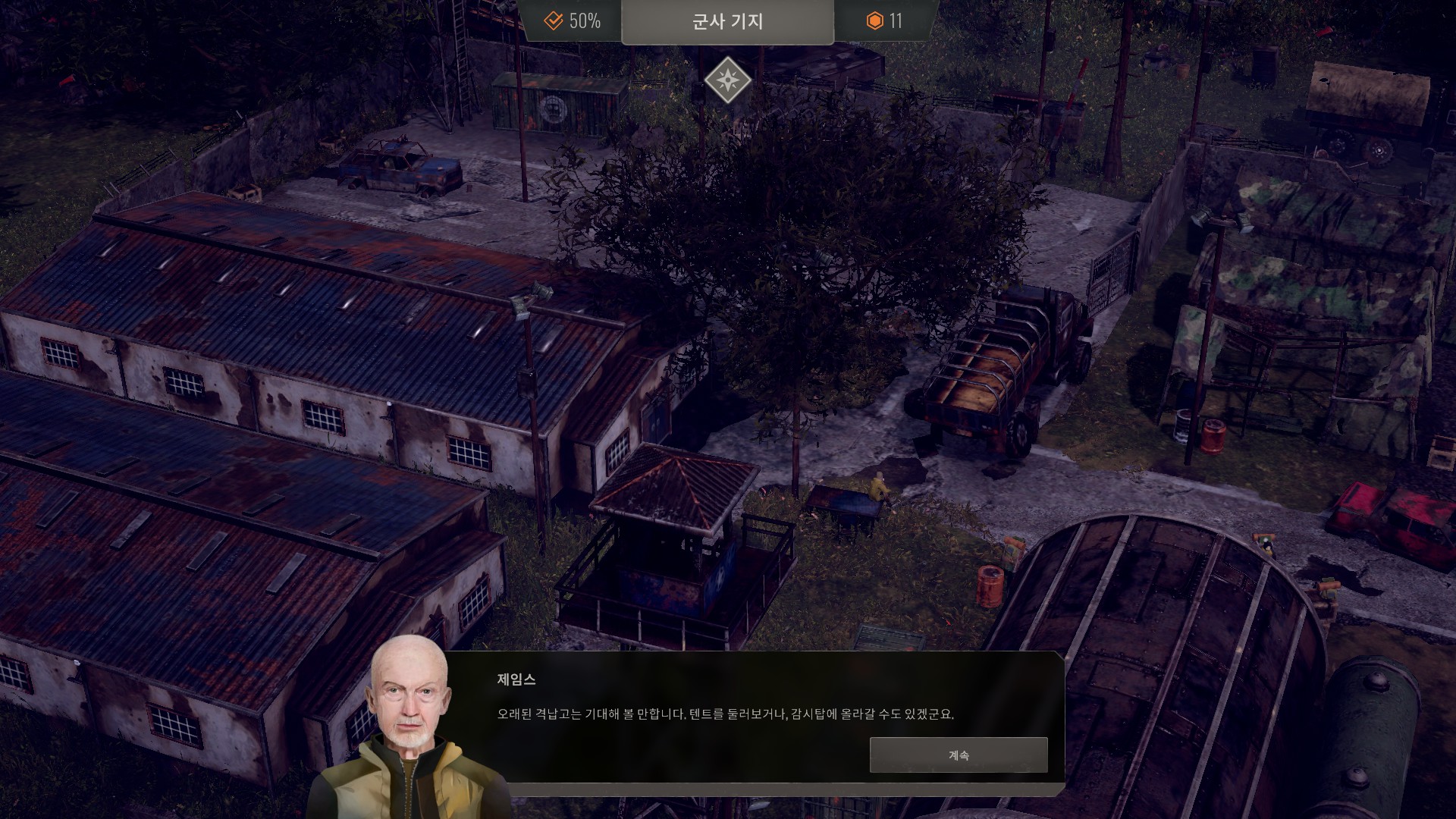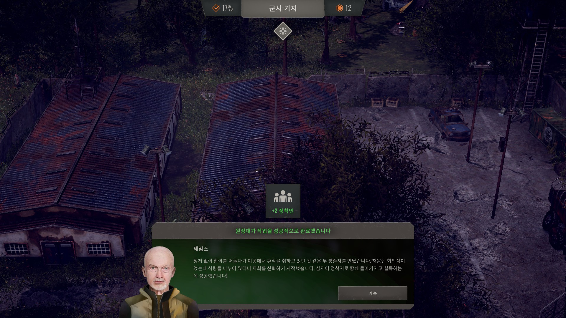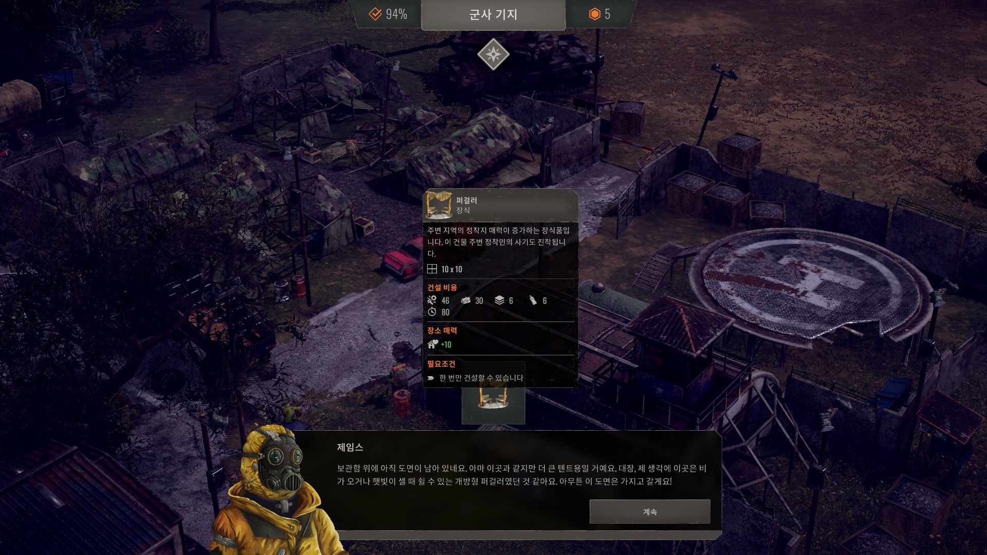 군사기지는 약간의 정착민과 퍼걸러를 얻을 수 있습니다.