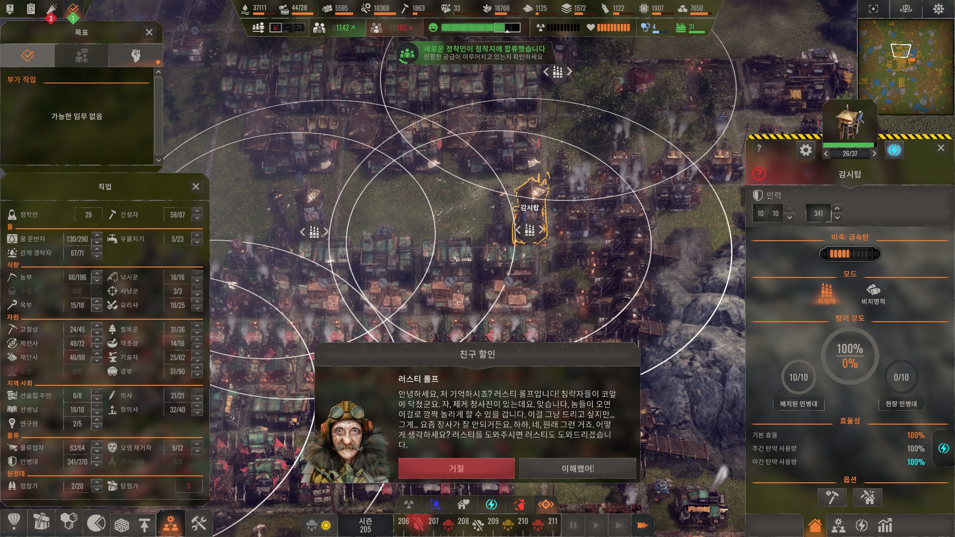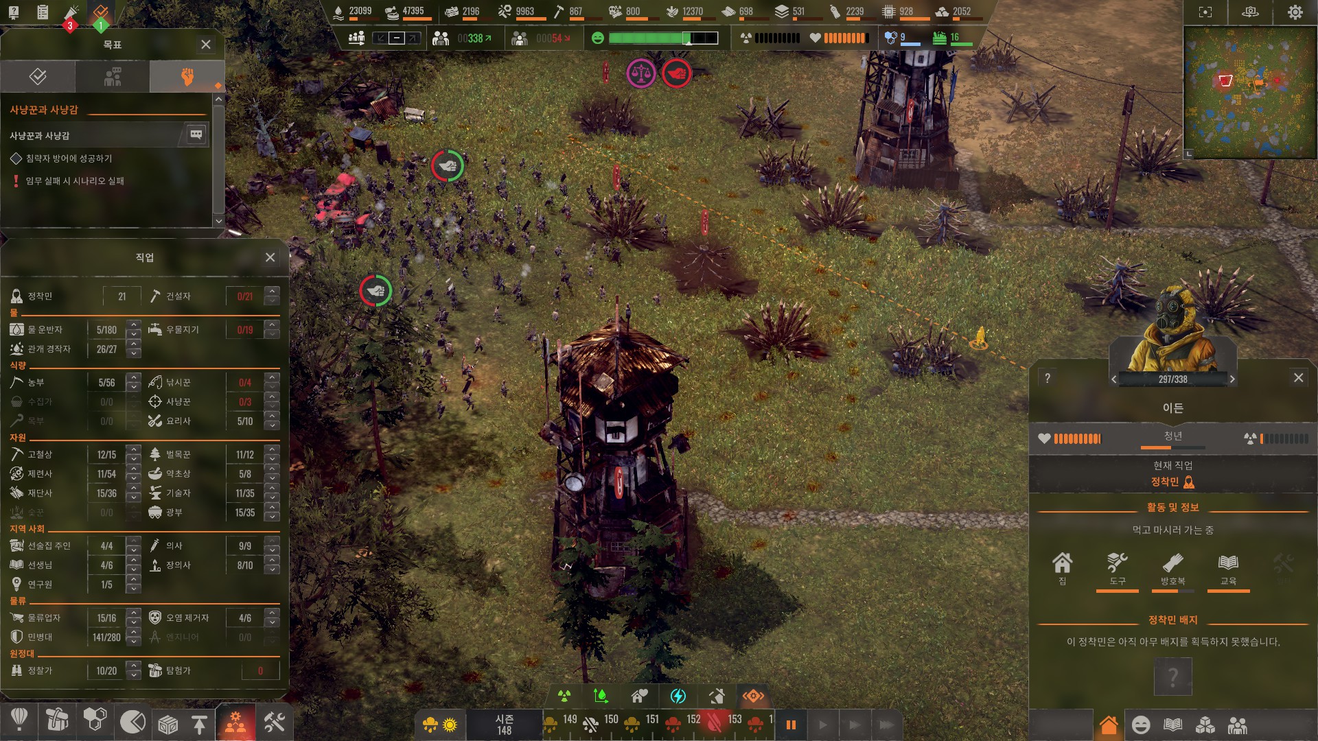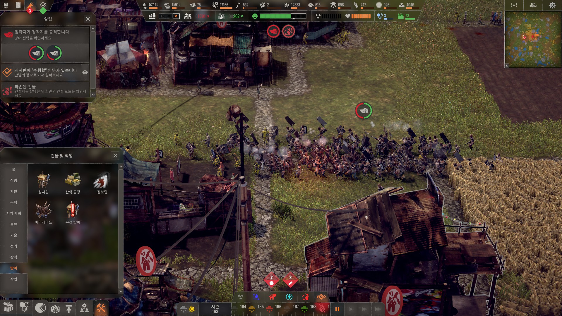 적의 규모가 인구와 비례하므로 무작정 인구 늘렸다가는 게임이 터집니다.