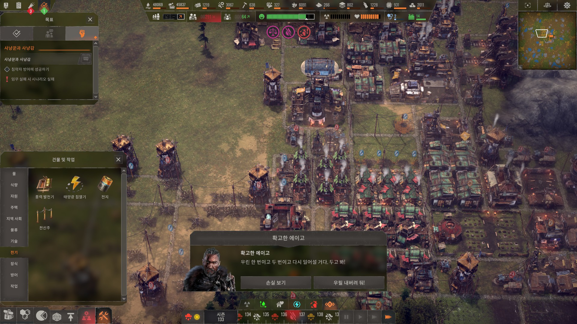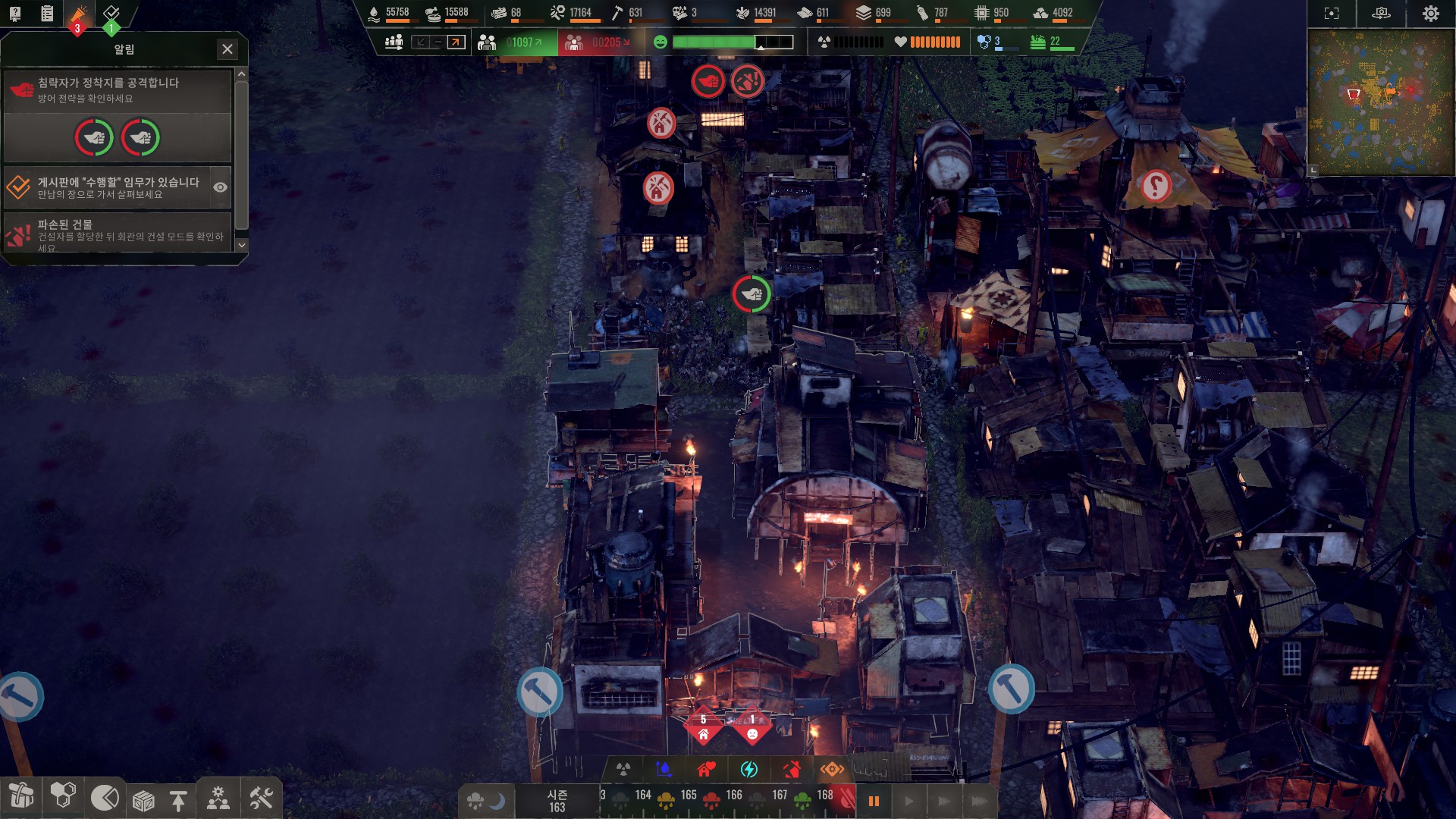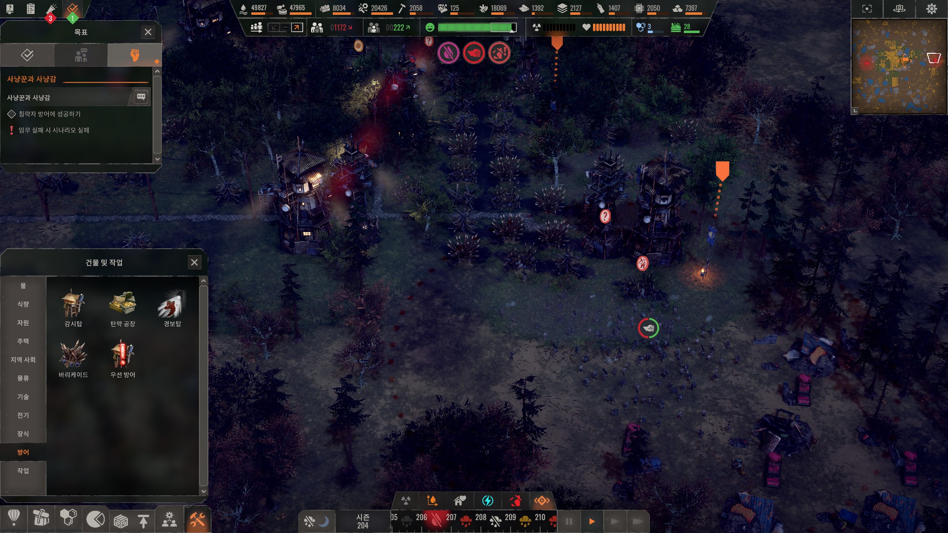 적의 규모가 인구와 비례하므로 무작정 인구 늘렸다가는 게임이 터집니다.