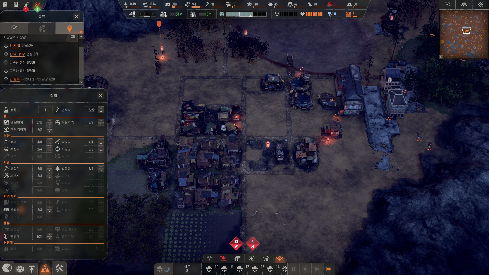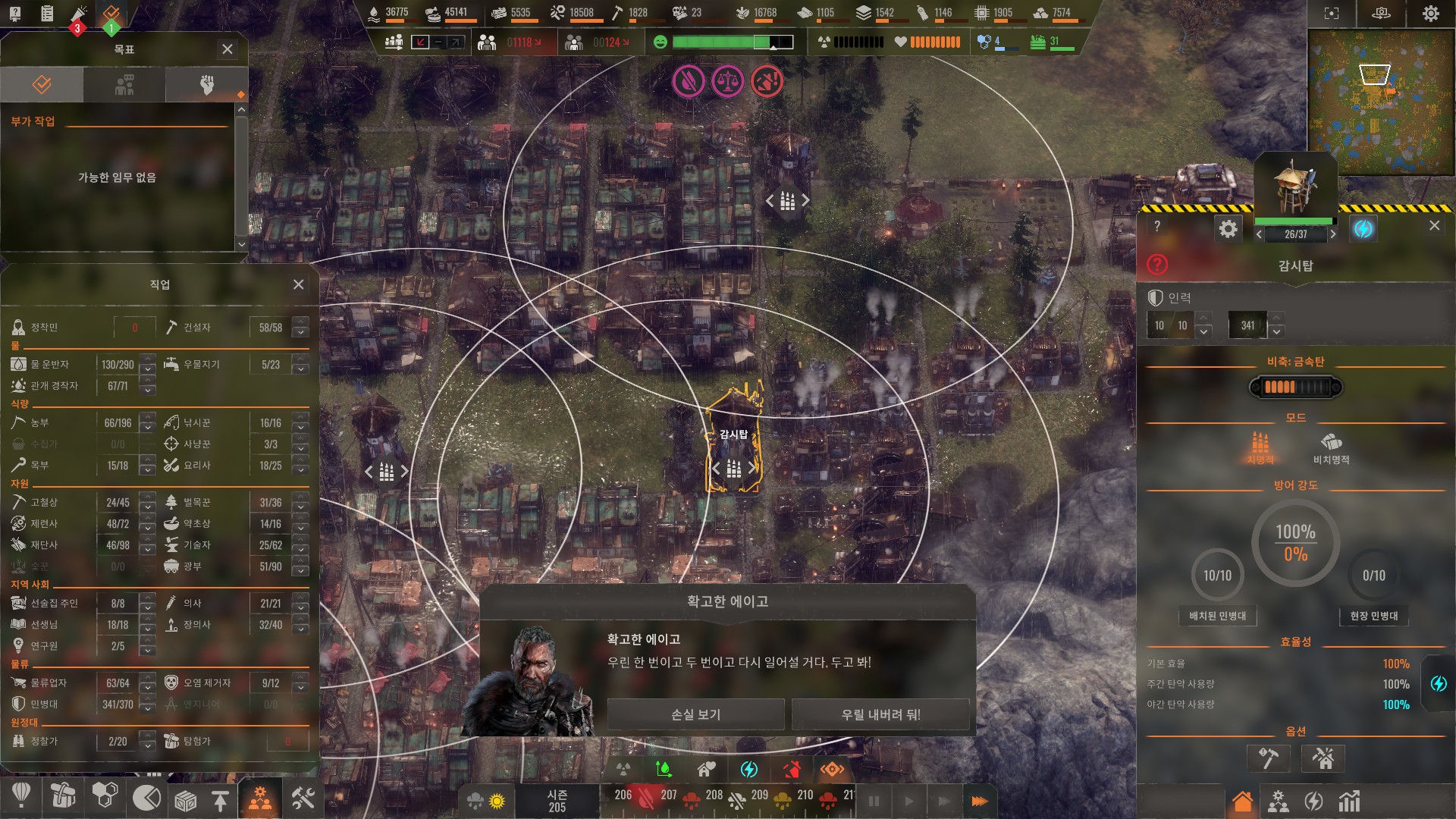 적의 규모가 인구와 비례하므로 무작정 인구 늘렸다가는 게임이 터집니다.