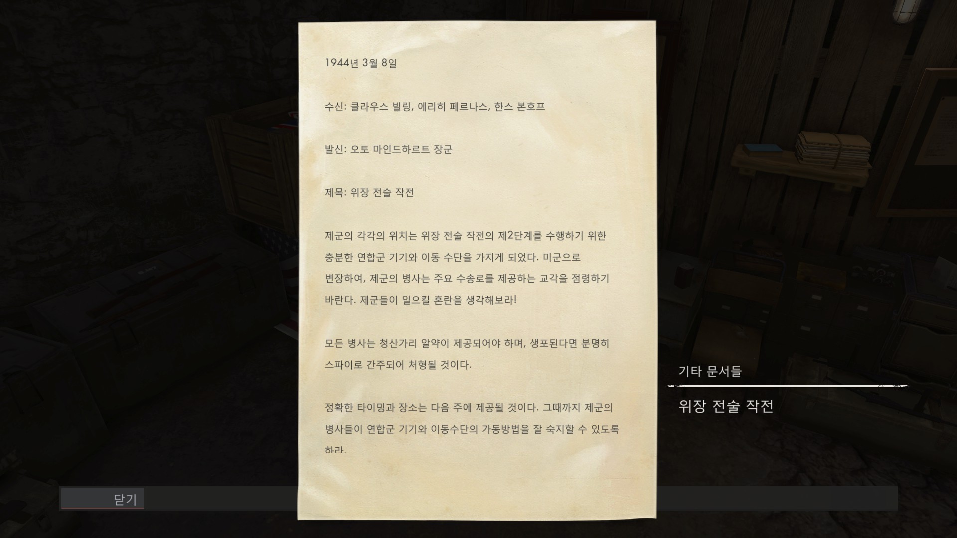'위장 전술'을 약하게 만들기위해 나치들이 모아둔 연합군 무기를 파괴했습니다.