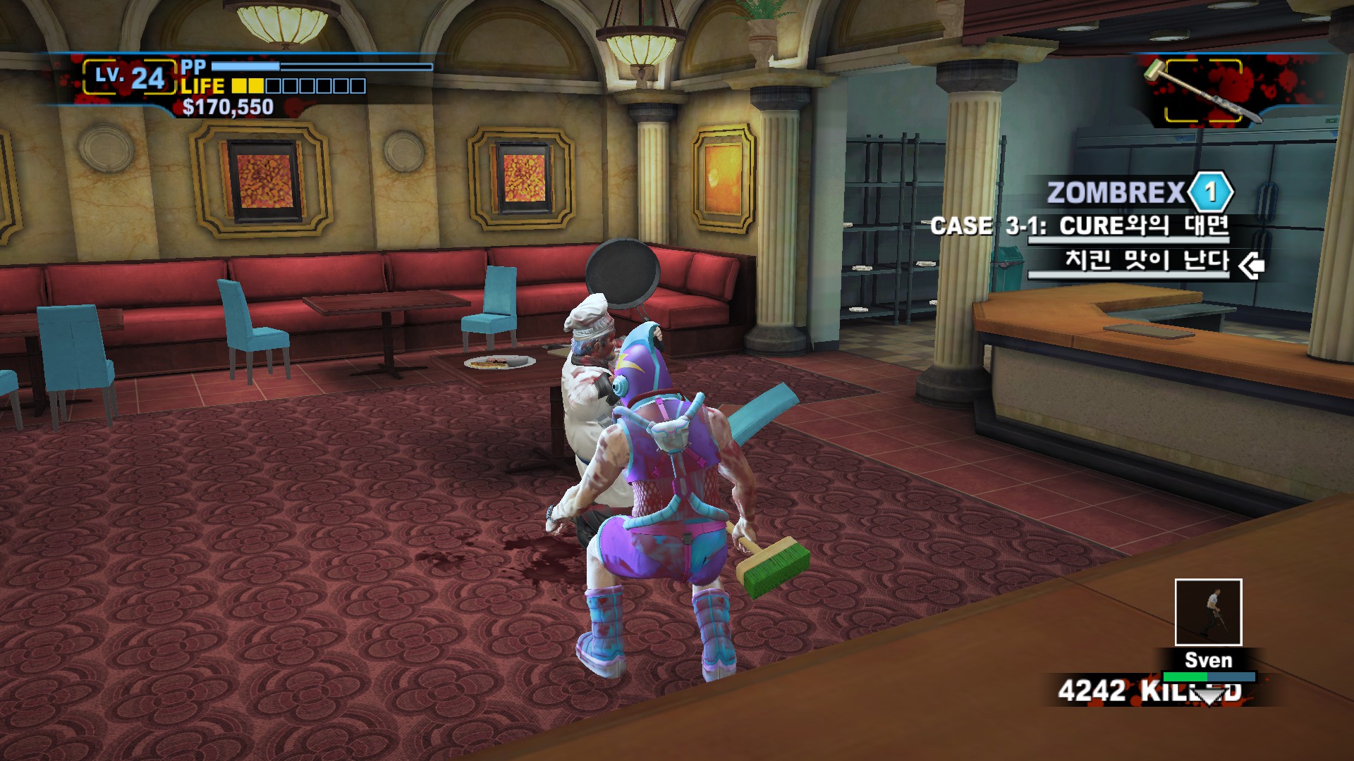 본편과 마찬가지로 틈있으면 음식을 먹어 회복하므로 거리를 적당히 유지하면서 싸워줍니다.