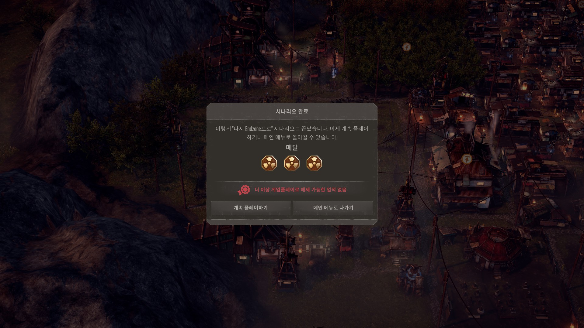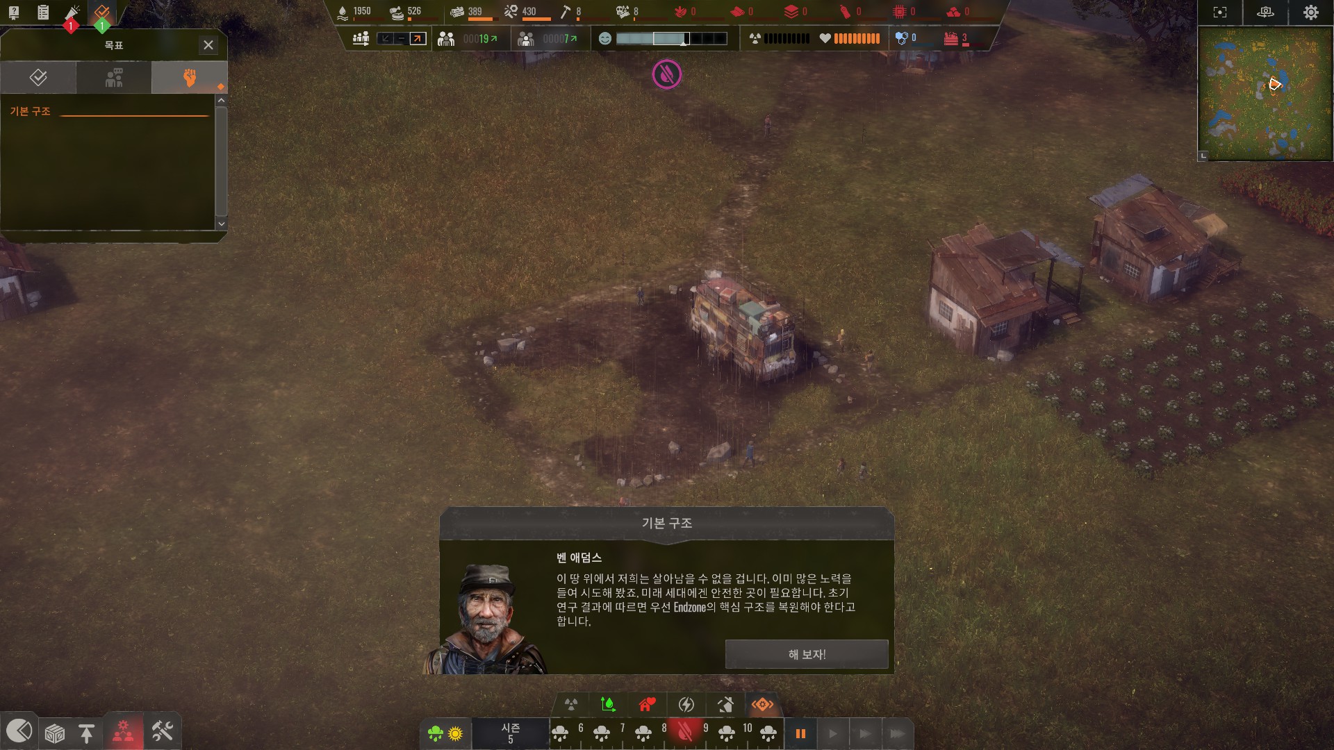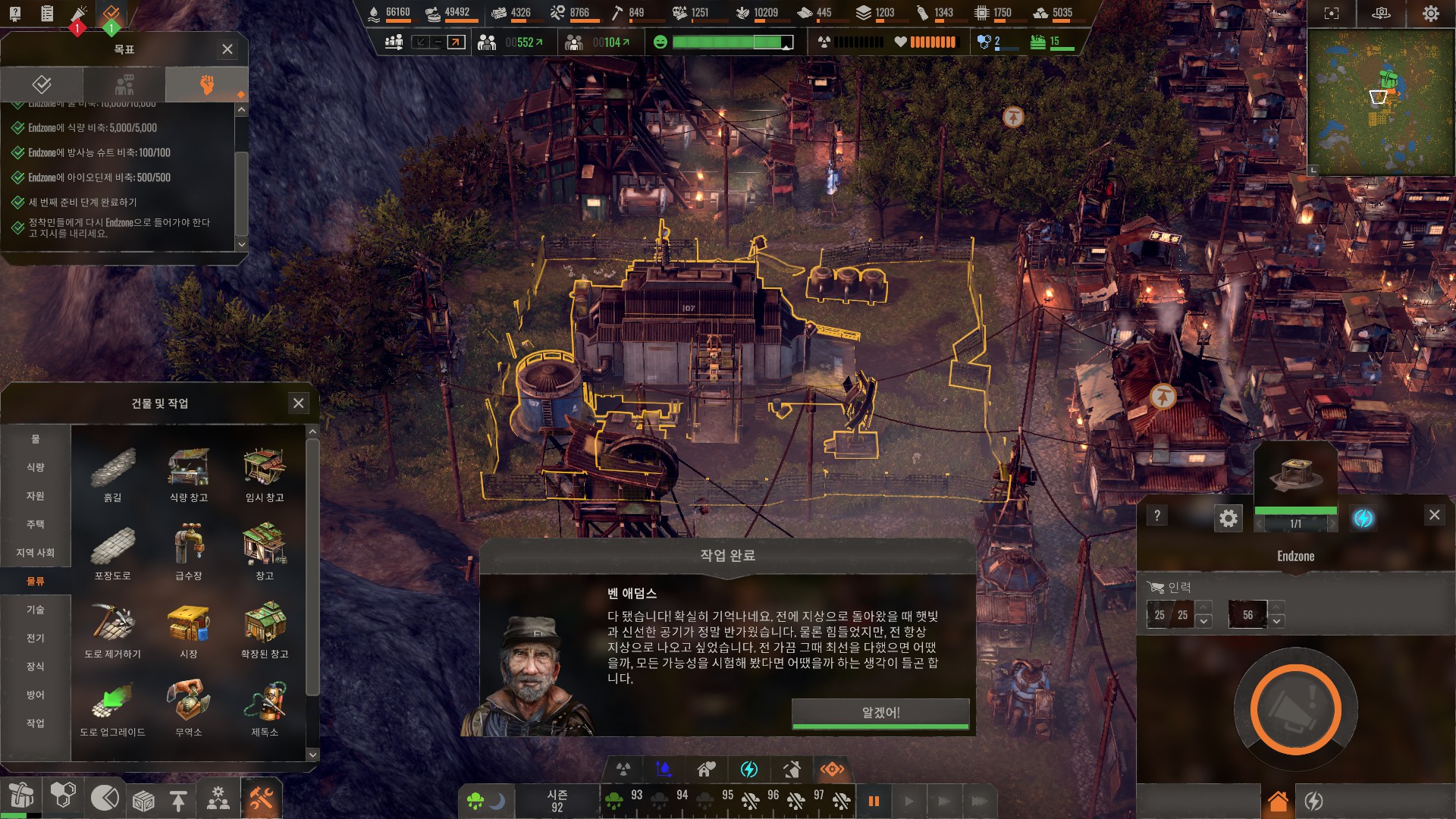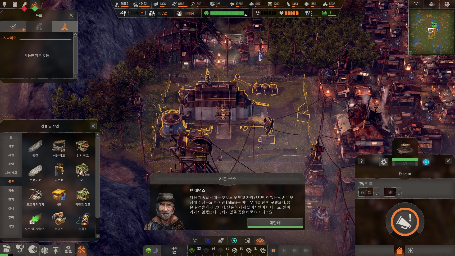 엔드존으로 돌아가자는 정착민들의 요구에 따라 엔드존을 수리하는 시나리오입니다.
