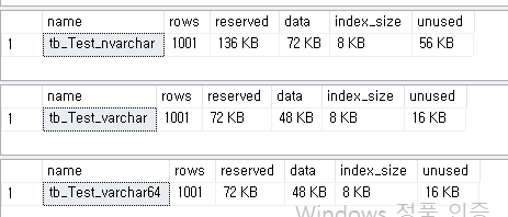 exec sp_spaceused tb_Test_nvarchar;