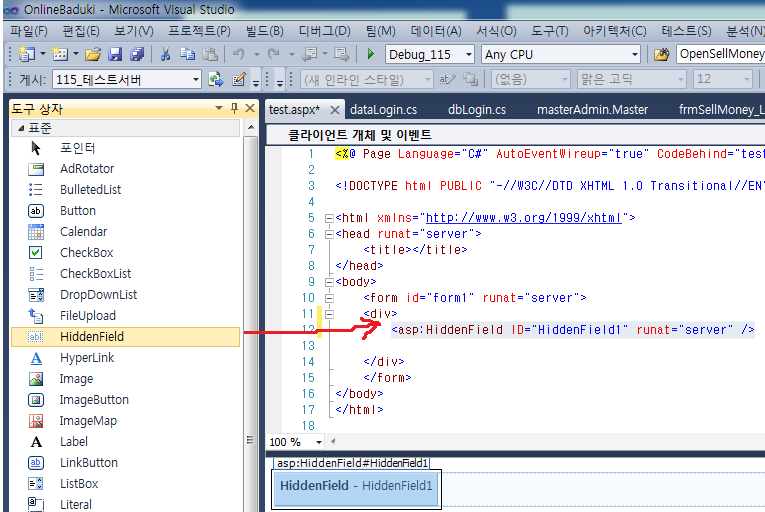 1번 줄 : 'ASP.NET WebForm'의 'HiddenField' 입니다.