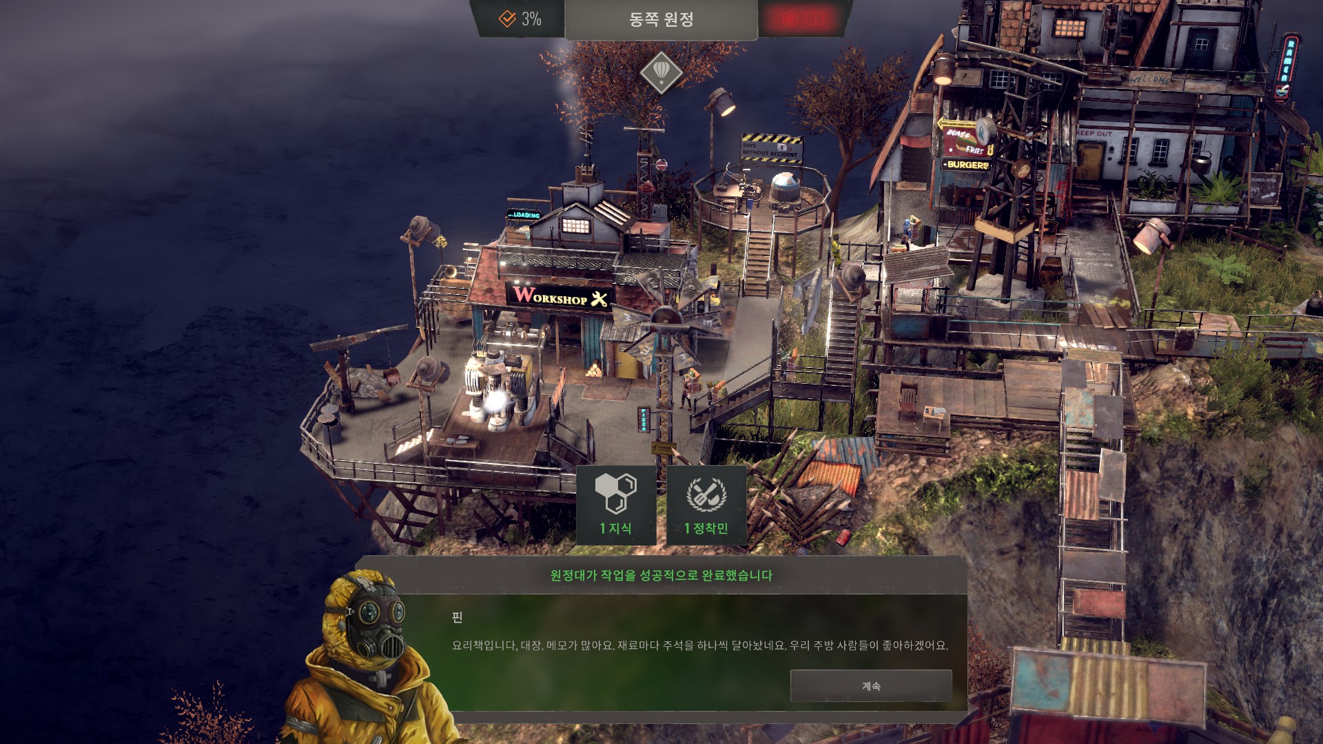 동쪽원정을 끝내면 식량과 식수 효율을 올려줍니다.