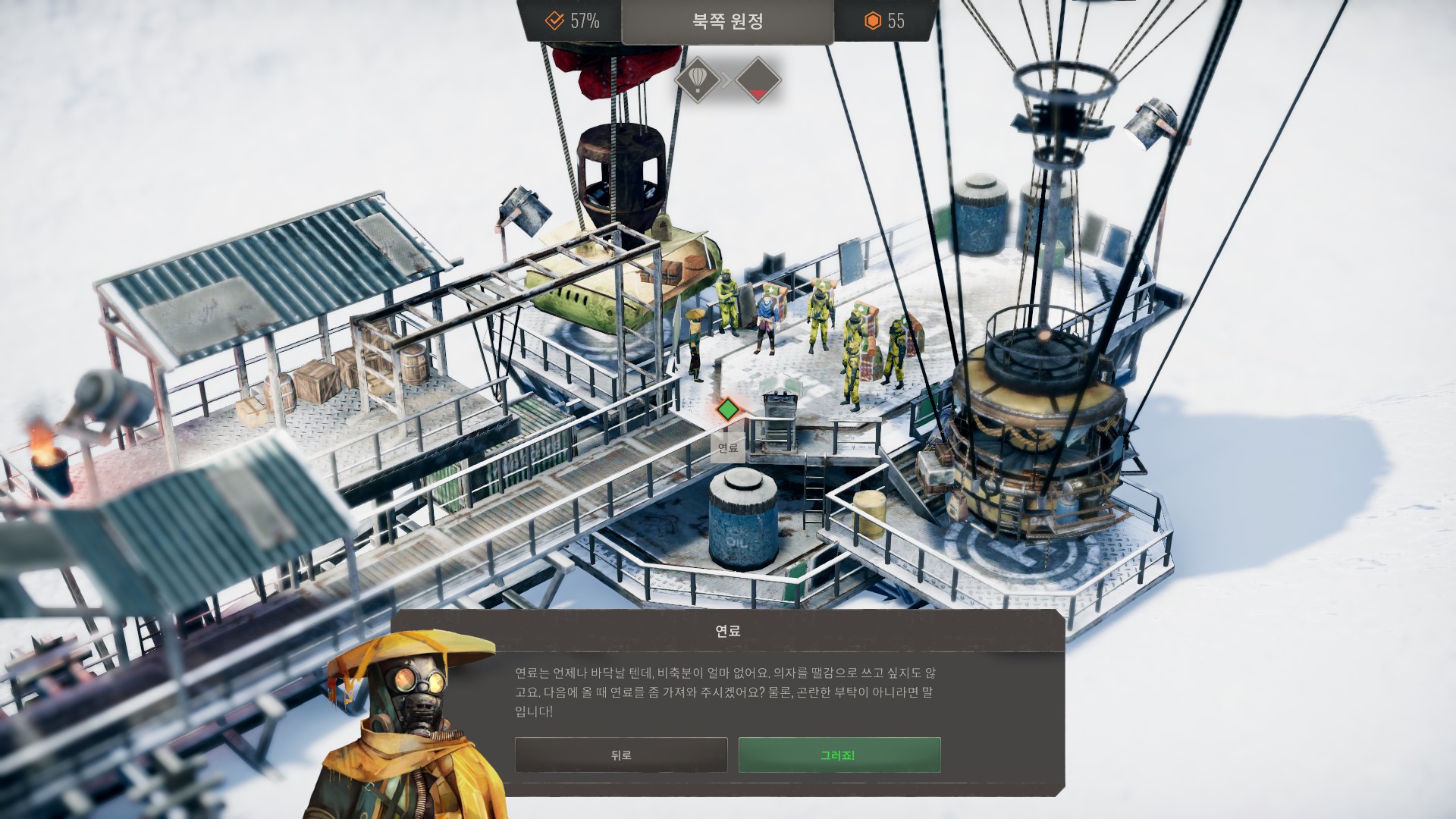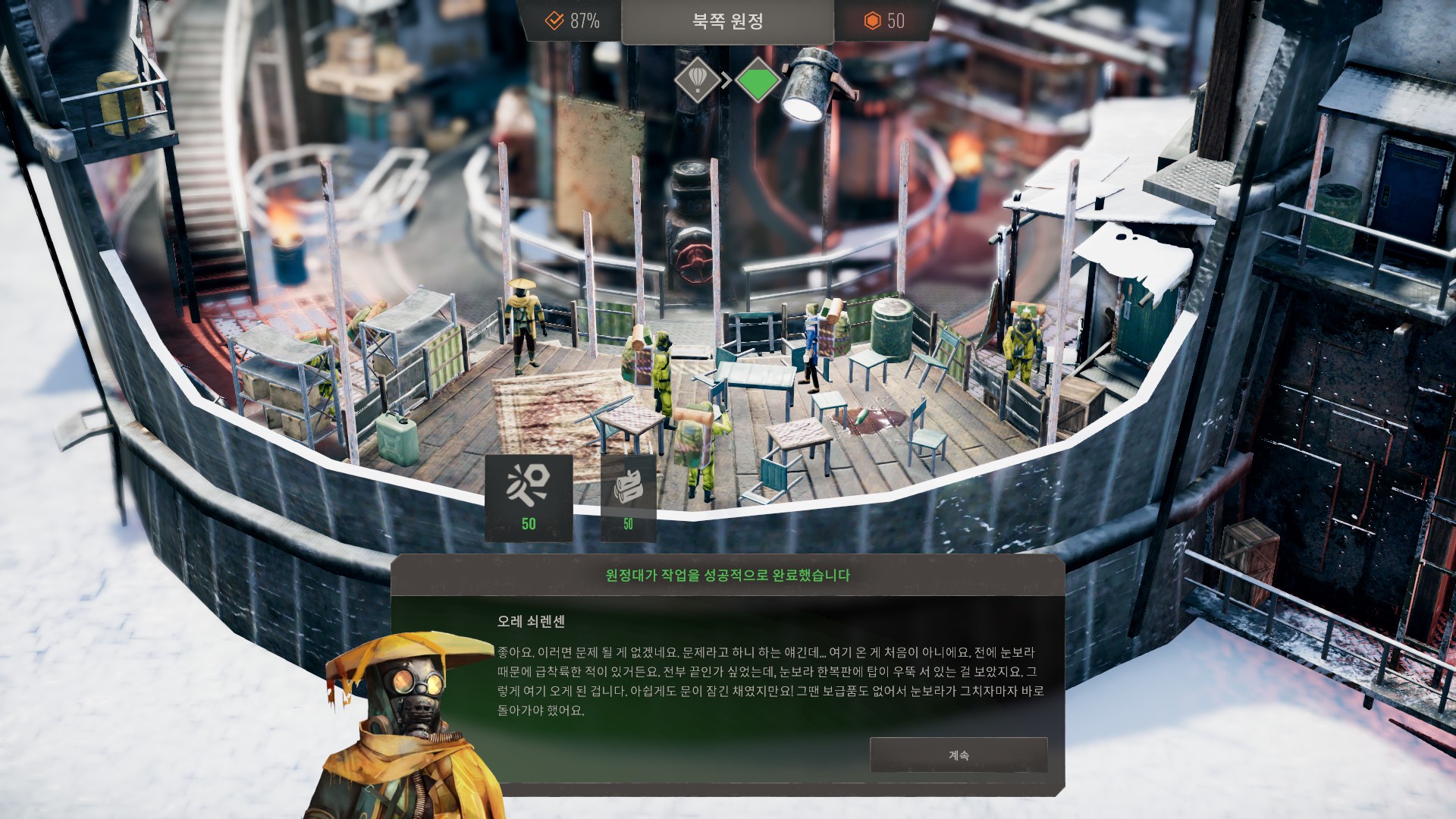 상인들이 북쪽에 아지트를 만드는데 도와달라고 합니다.