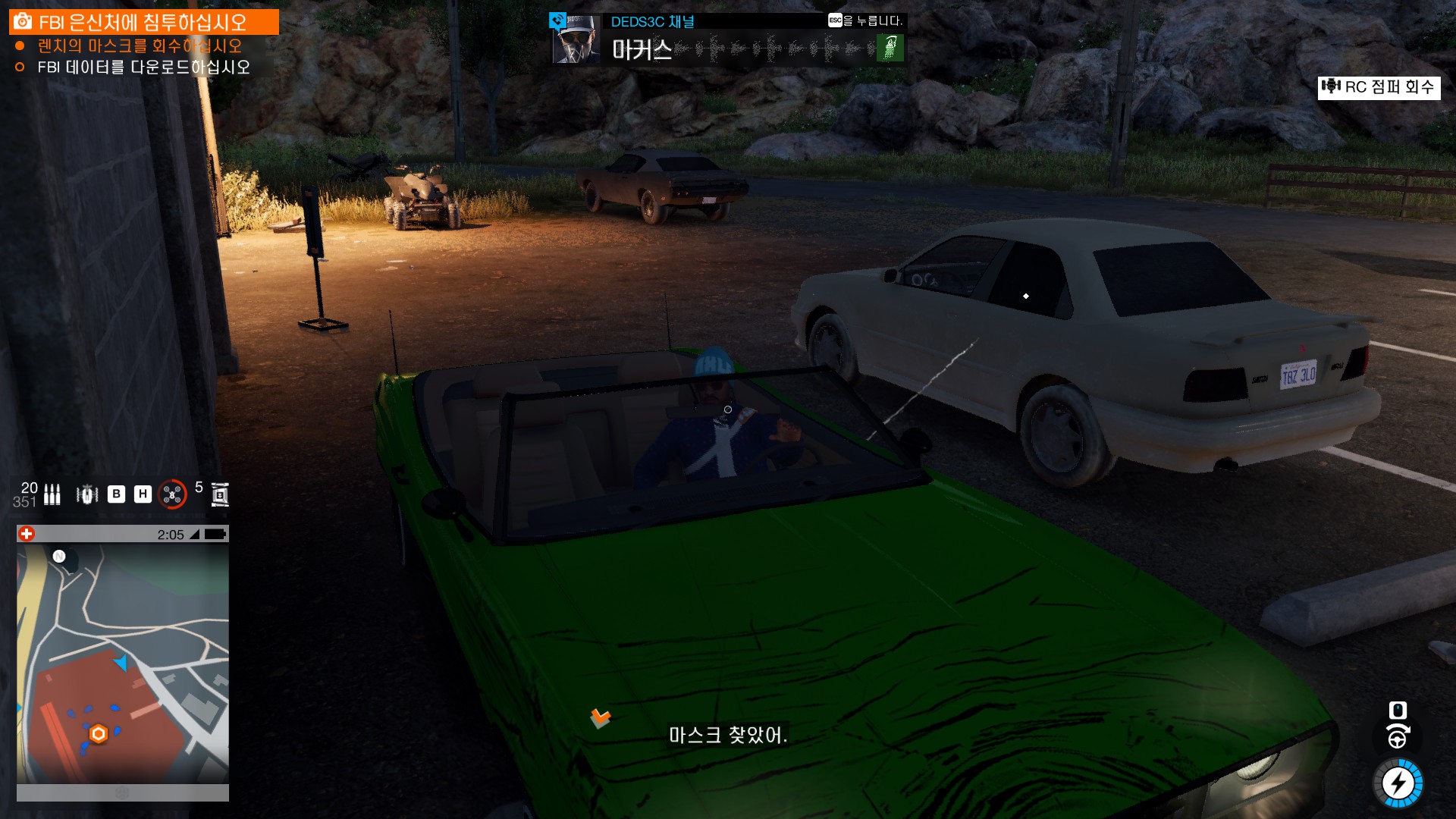 FBI한테 뺏긴 마스크도 찾아왔고 앞통수도 거하게 쳤습니다.