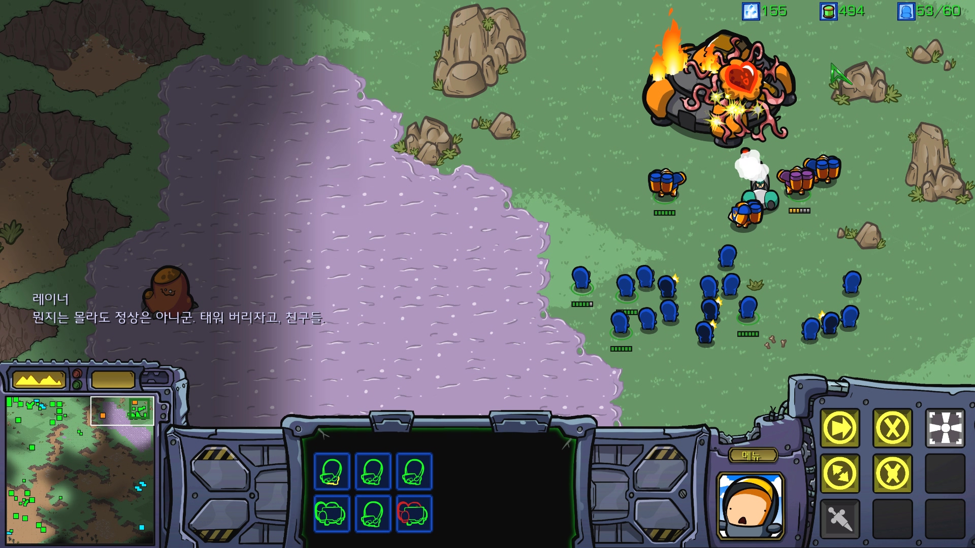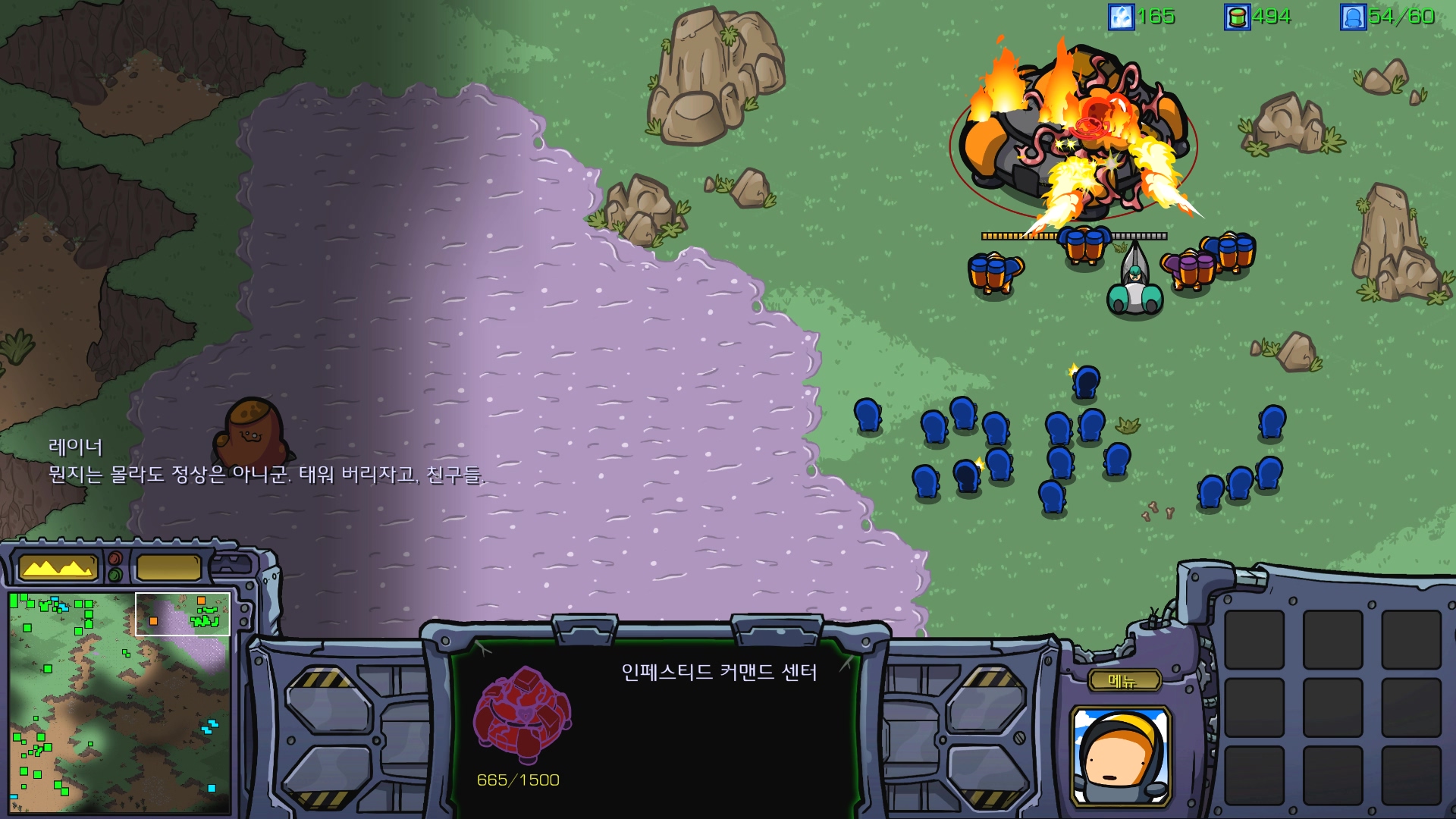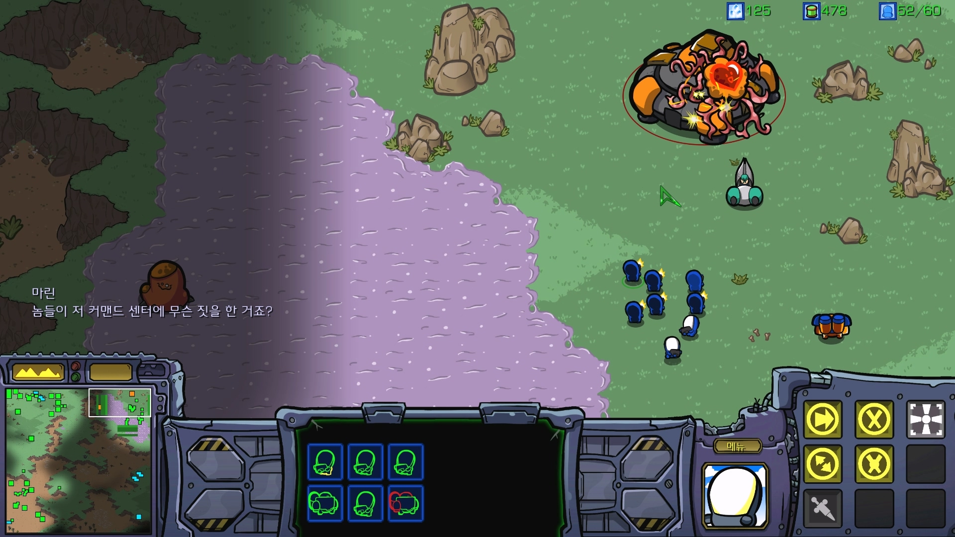 레이너와 같이 저그를 처리하다보니 감염된 커맨드센터가 나옵니다.