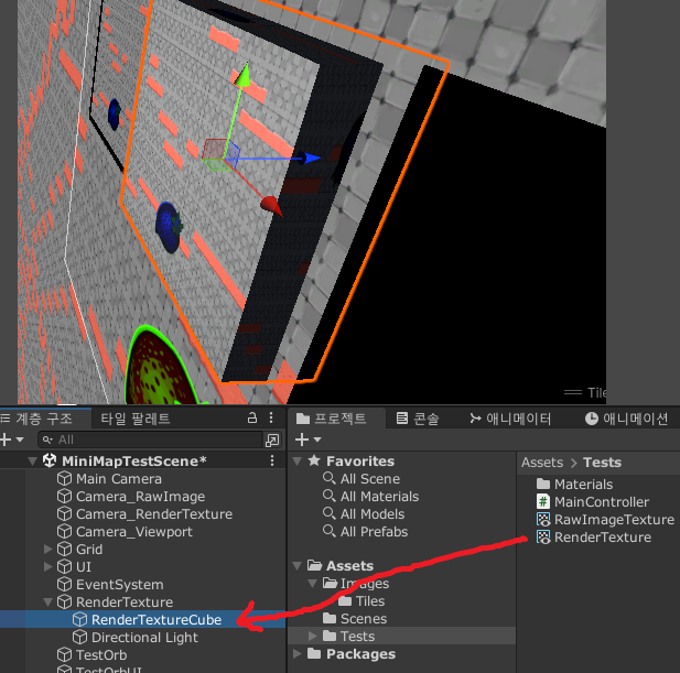 그래서 엄밀하게 말하면 미니맵을 구현한다기보다는 카메라를 3D오브젝트에 표시하는 것입니다.