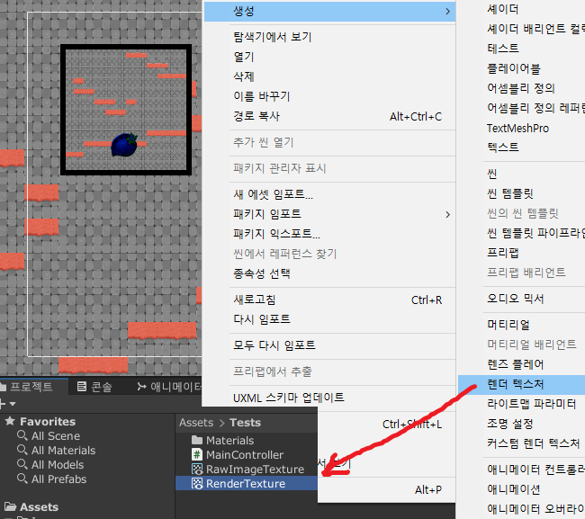 오른쪽 클릭 > 생성 > 렌더 텍스처