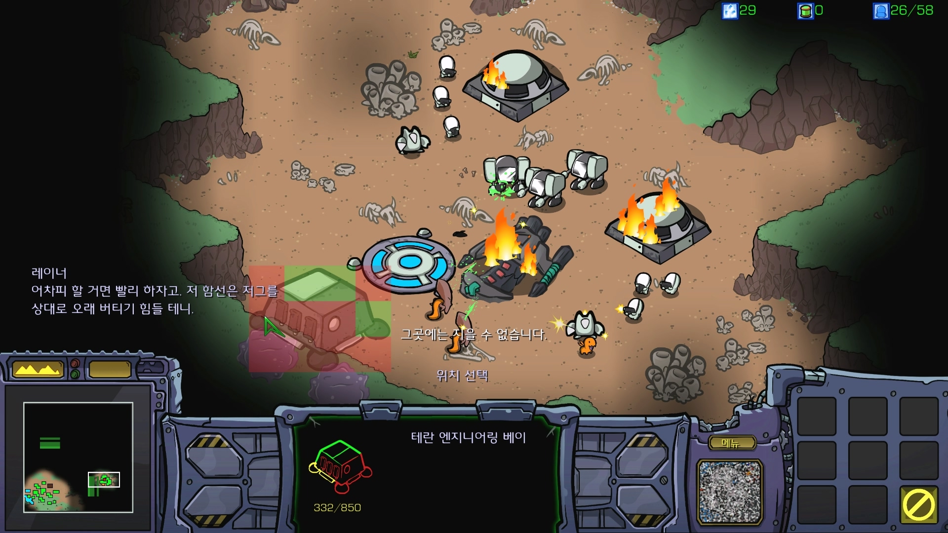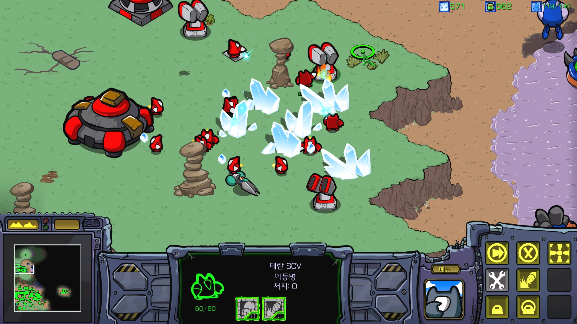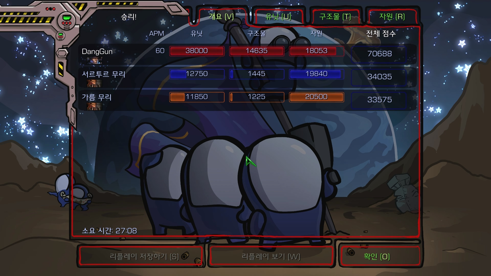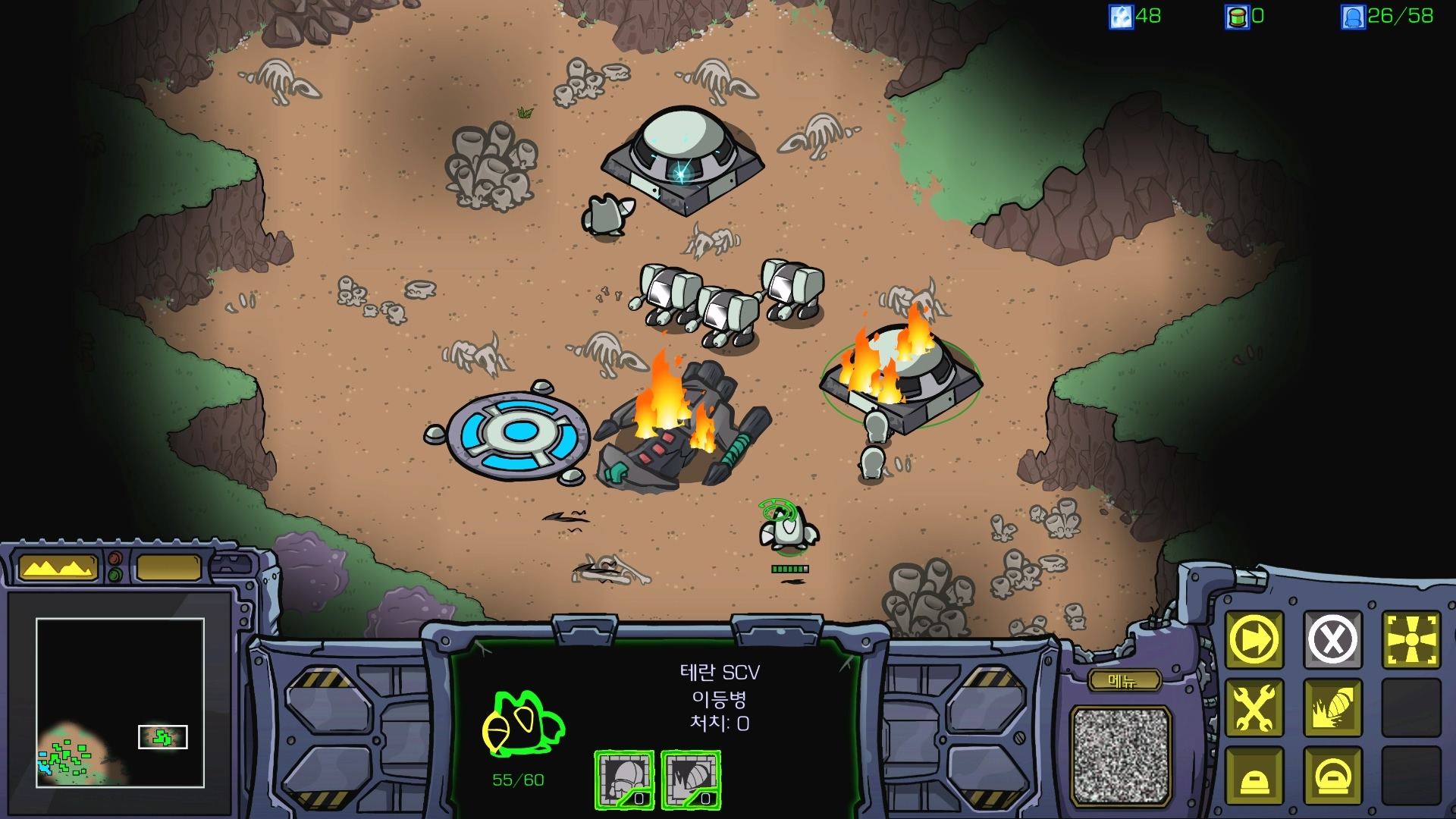 SCV가 죽으면 X되므로 벙커에 잘 넣어주면 쉽습니다.
