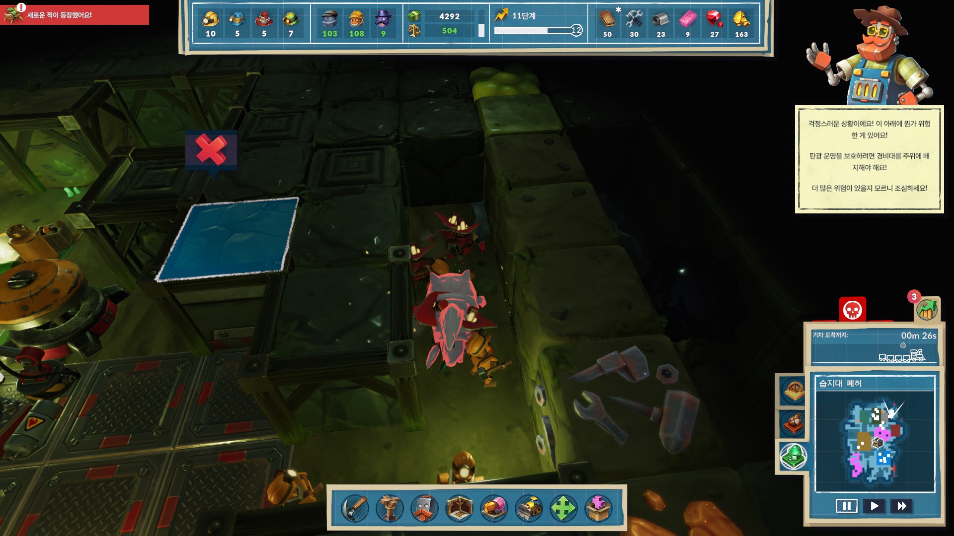 경비병이 충분한지 확인하고 굴착해야 합니다.