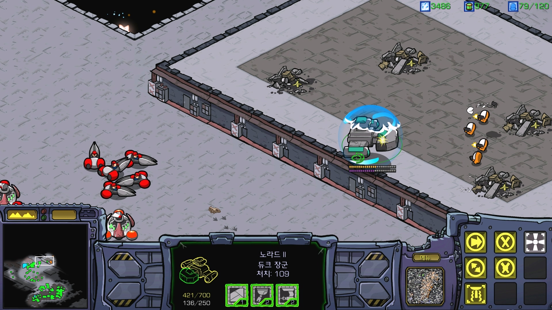 듀크의 베틀크루저가 원채 맵집이 좋아서 디펜시브 매트릭스 걸고 탱킹하면 쉽게 클리어 할 수 있습니다.