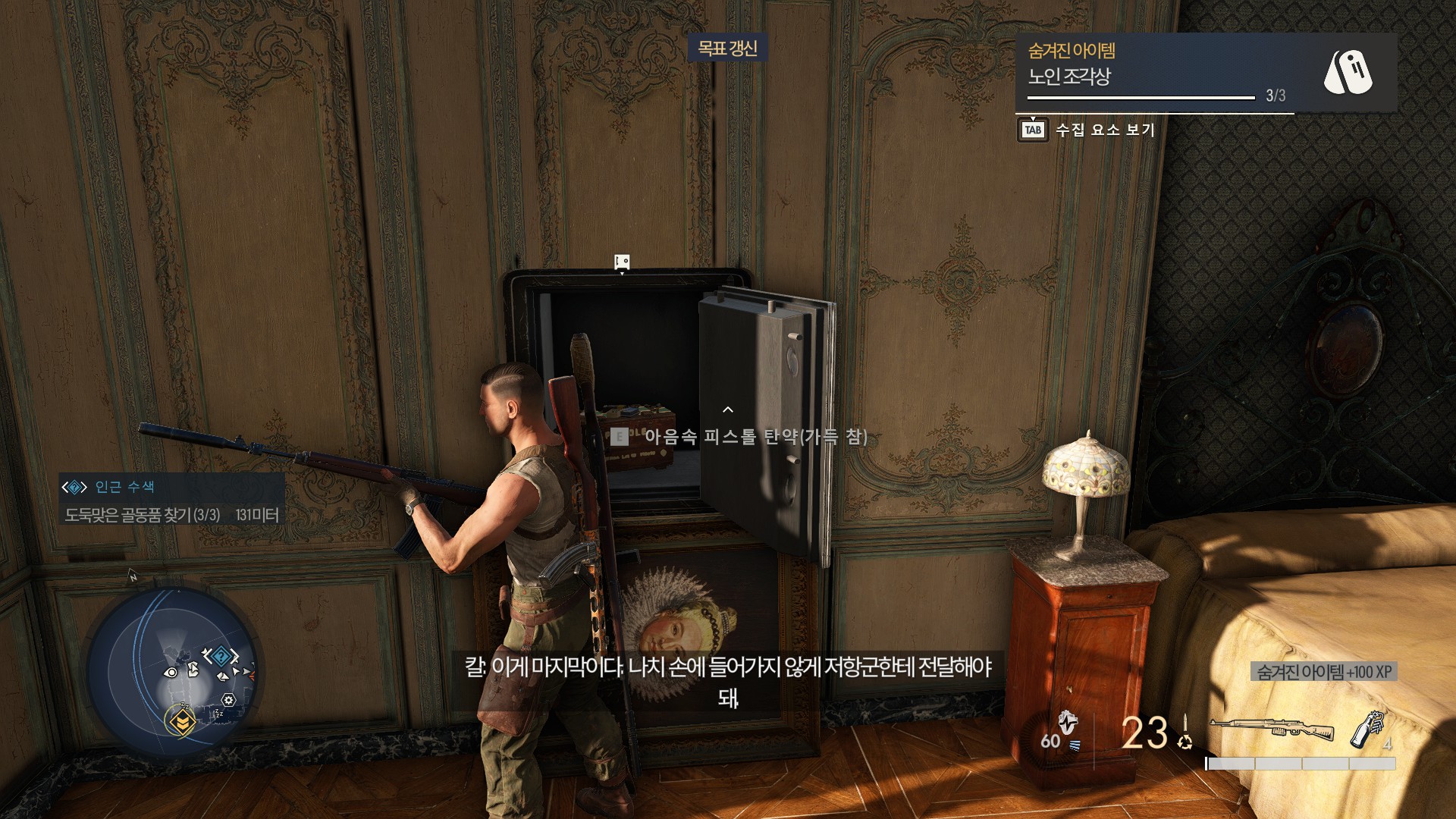 잠겨있는 뮐러의 사무실에 들어가기위한 정보를 찾으면서 골동품을 찾고 있습니다.