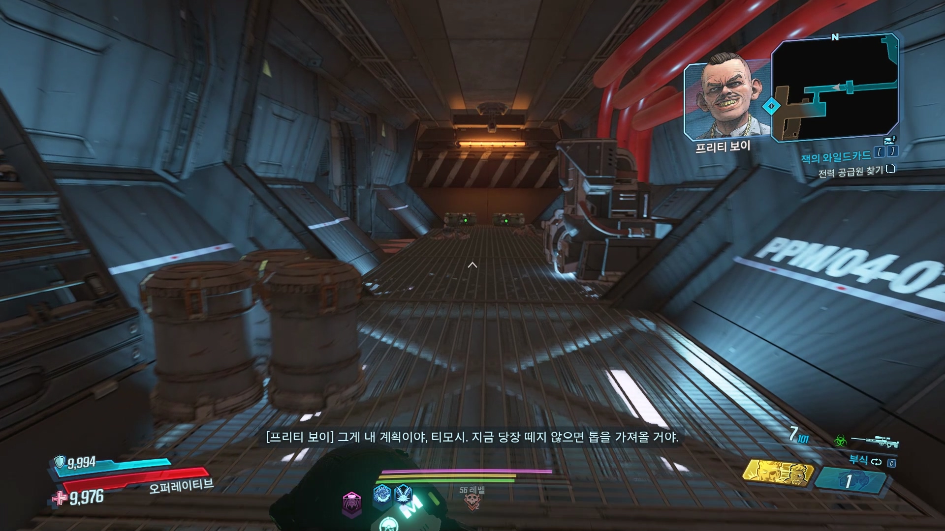 프리티보이가 사용하고 있는 로봇 생산 공장을 부수면서 전진하고 있습니다.