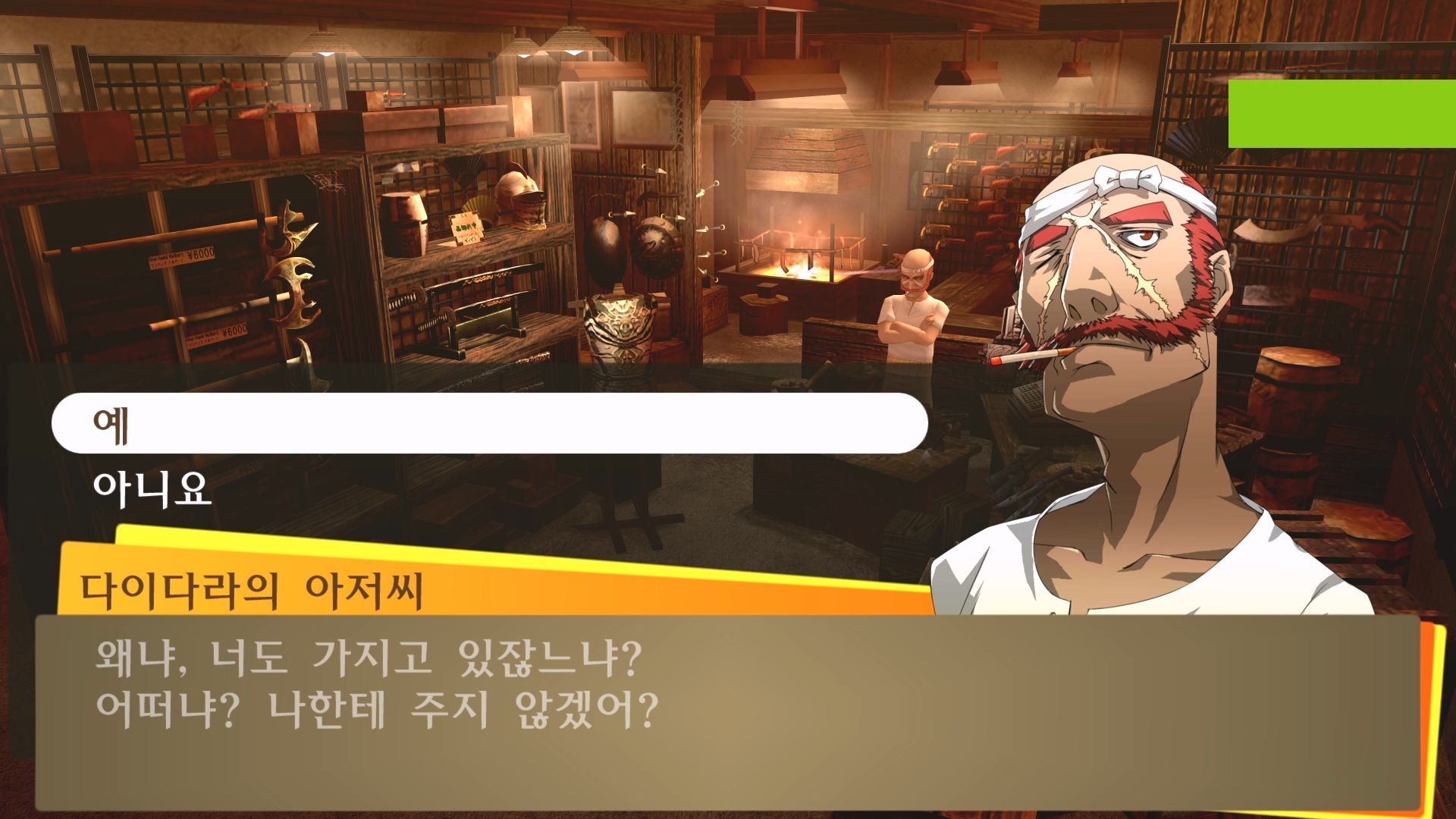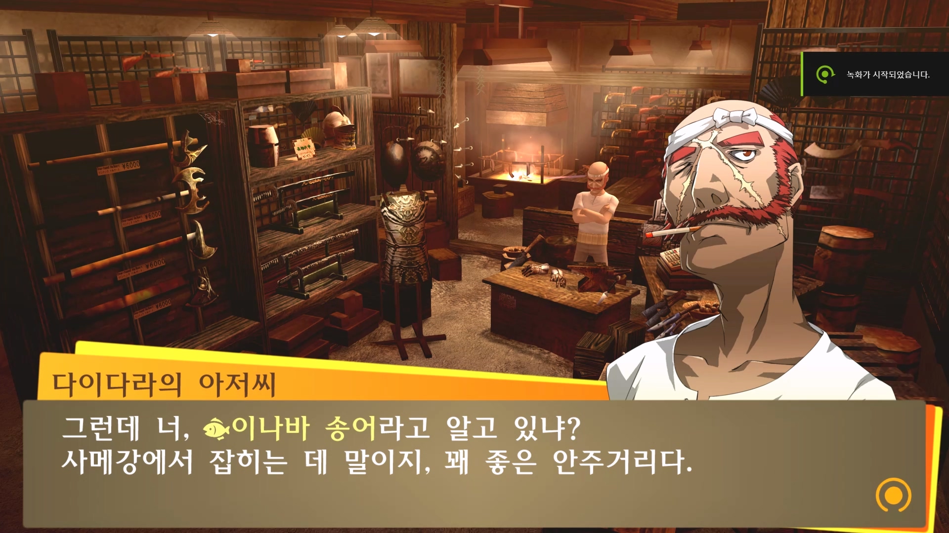 다이다라 아저씨에게 낚시로 잡은 이나바 송어를 주면 됩니다.