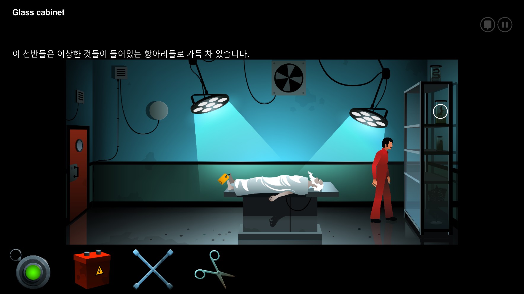 과거의 부검실에는 의문의 노인의 시체가 와있네요.