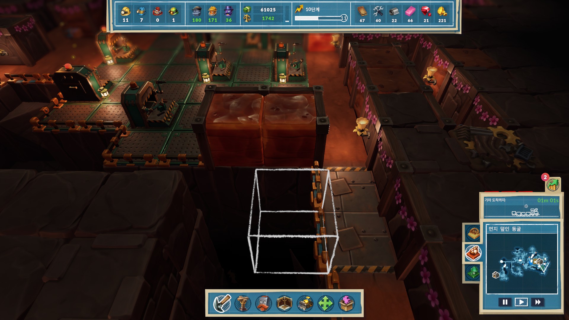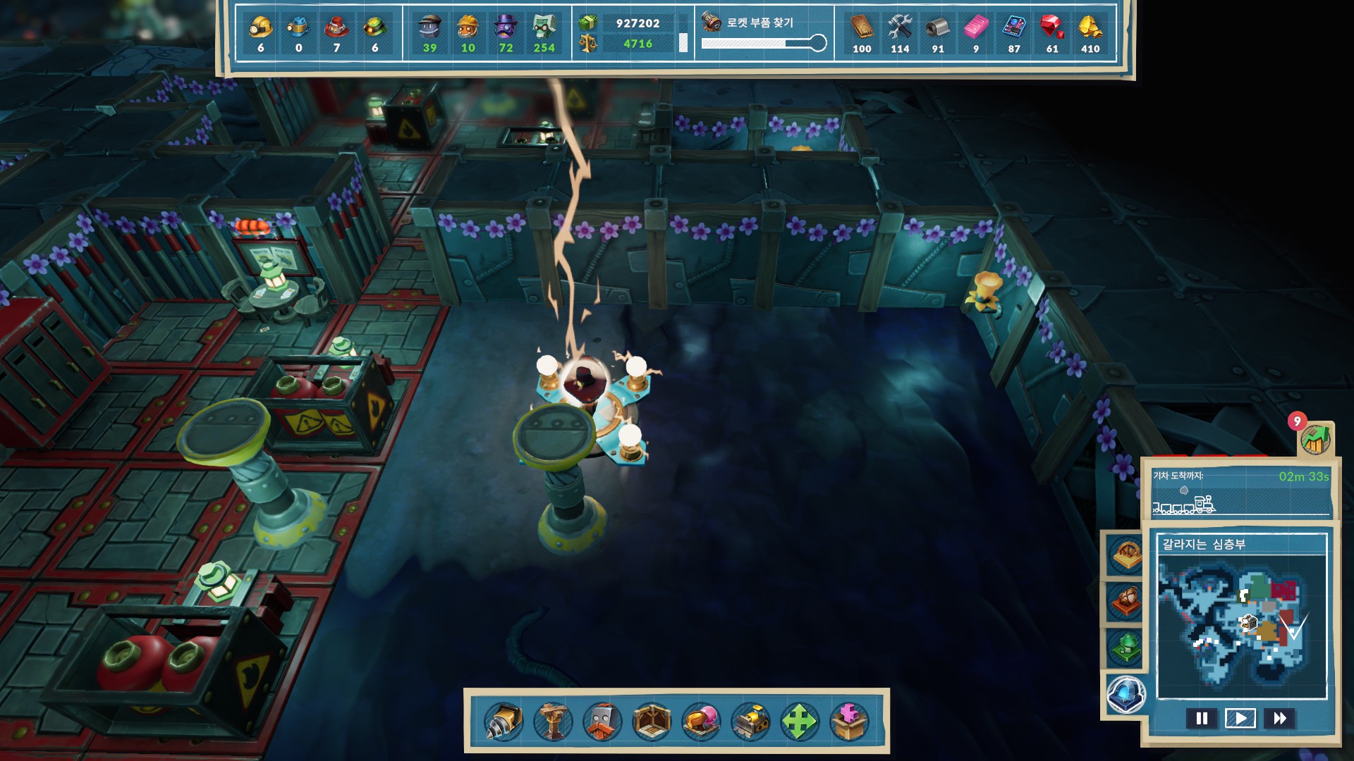 광부봇의 속도가 빨라지고, 방과 구역의 크기당 할당되는 봇숫자를 늘려줍니다.