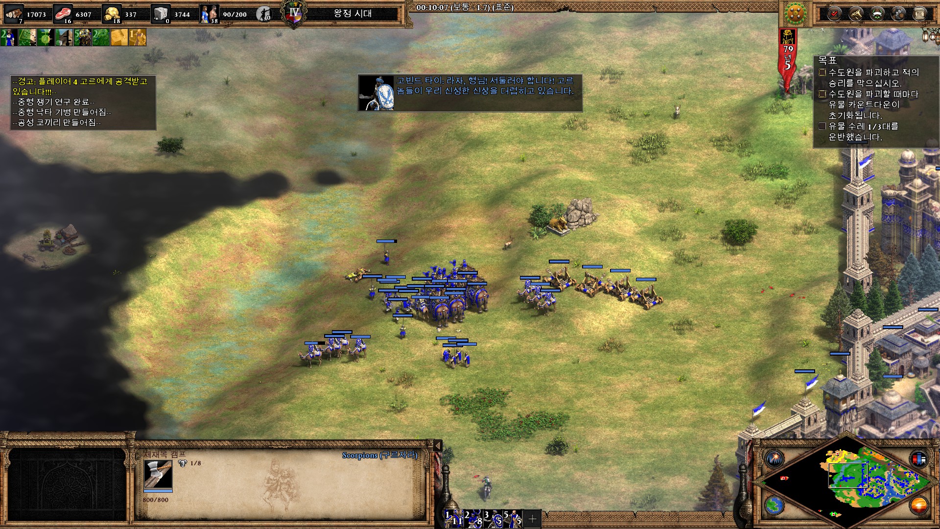 병력이 모이면 일단 유물이 있는 수도원부터 파괴해야 그나마 쉽습니다.