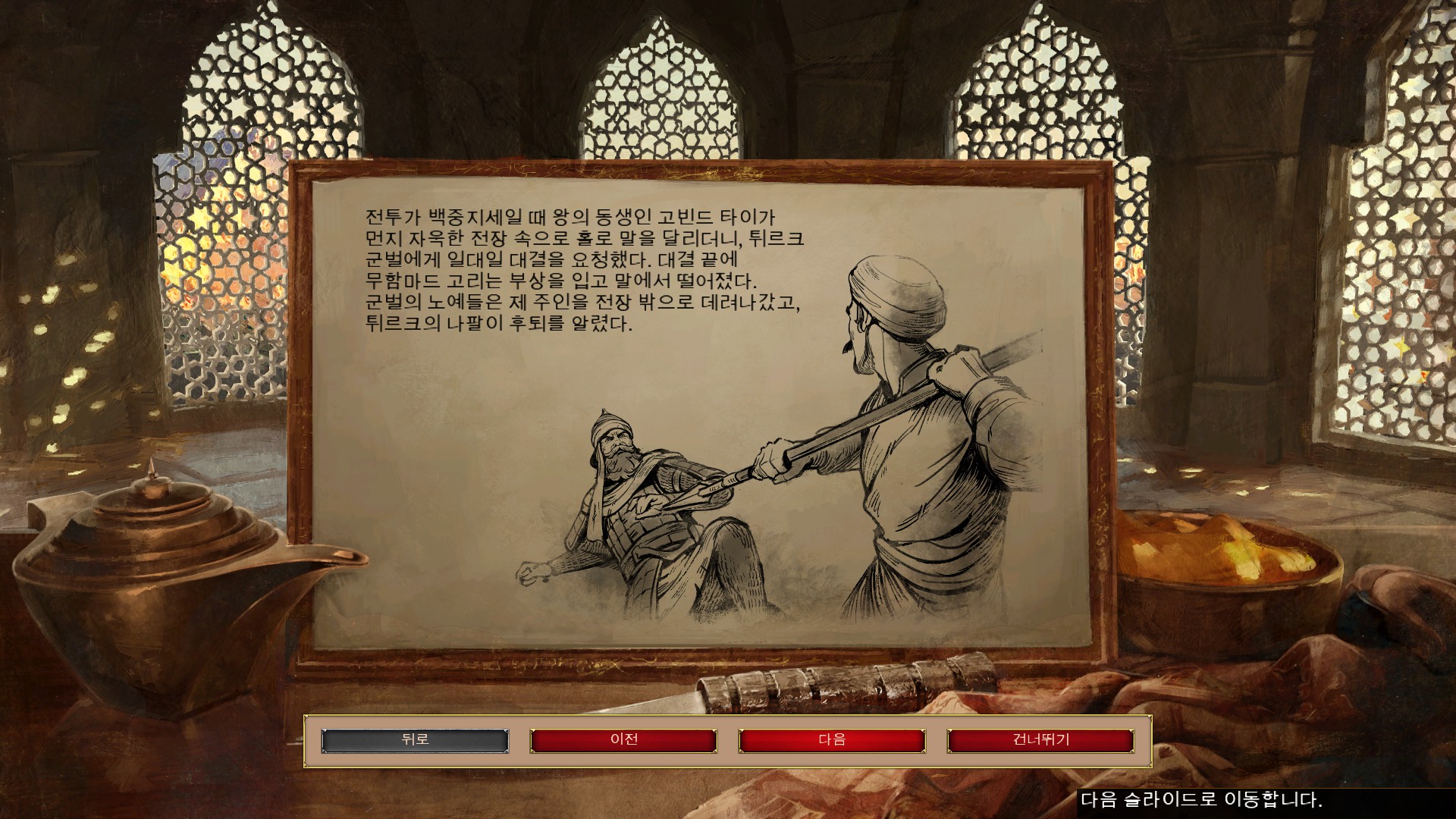 엄청난 공격을 버티고 튀르크를 몰아냈습니다.