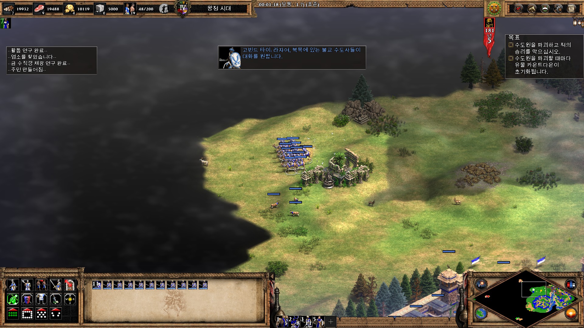 병력이 모이면 일단 유물이 있는 수도원부터 파괴해야 그나마 쉽습니다.