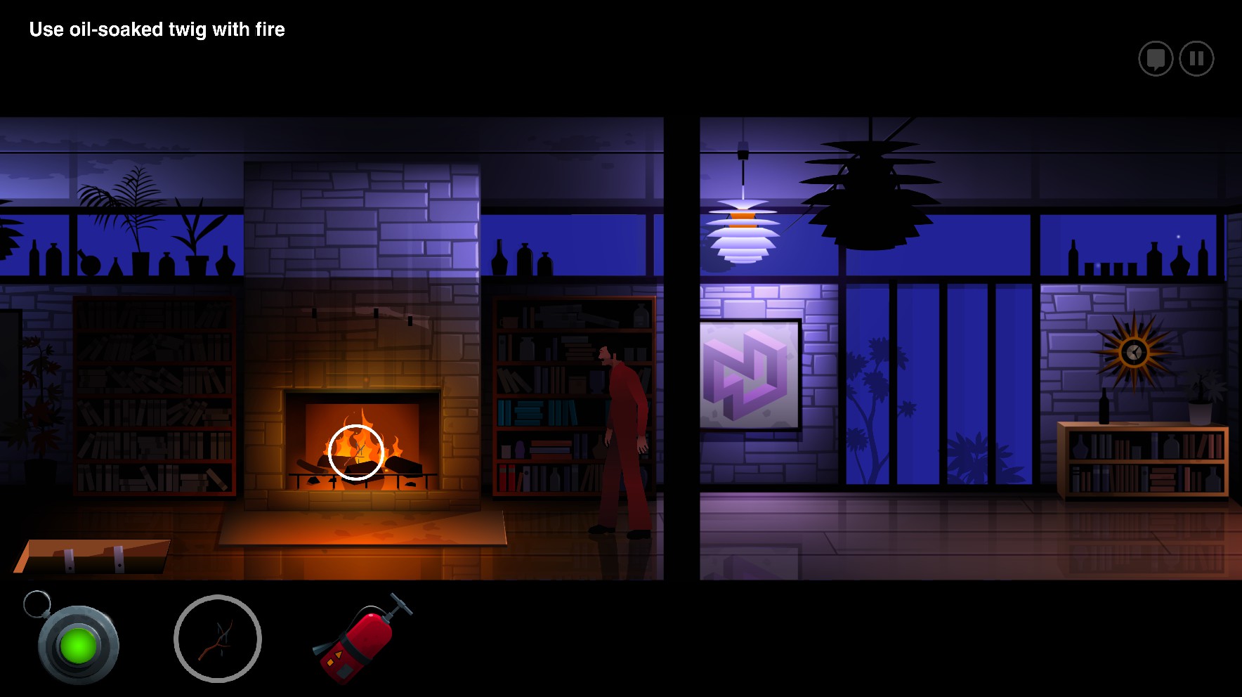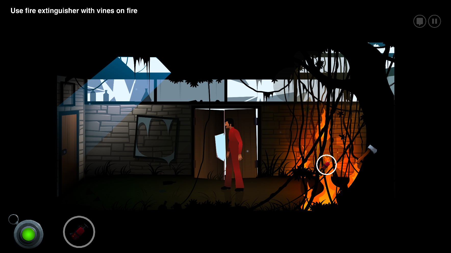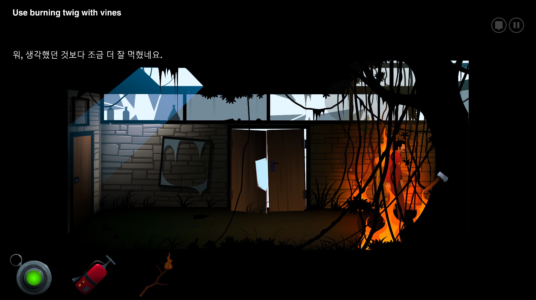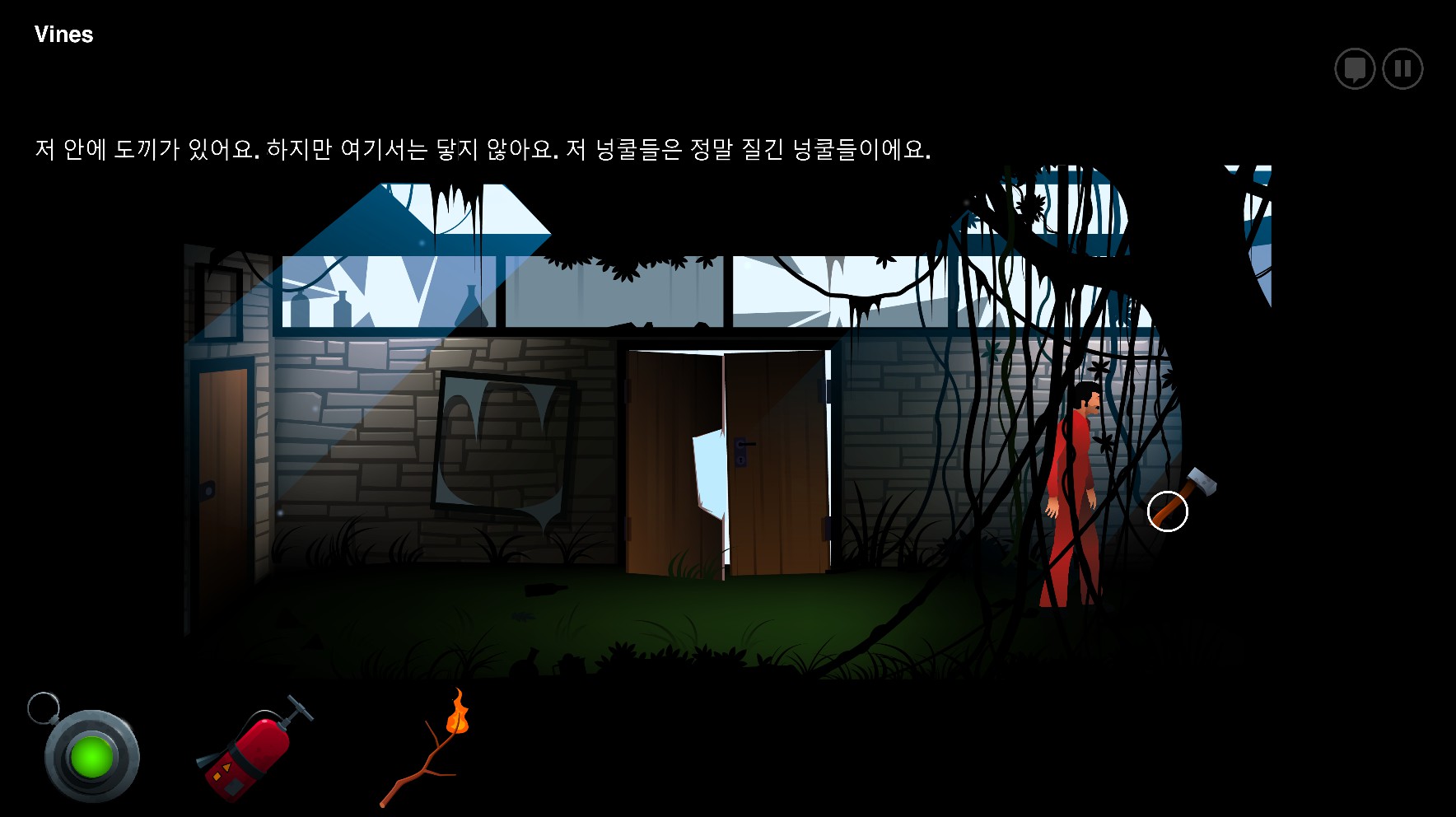 나무에 박힌 도끼를 꺼내려고 덩쿨에 불을 지른다......