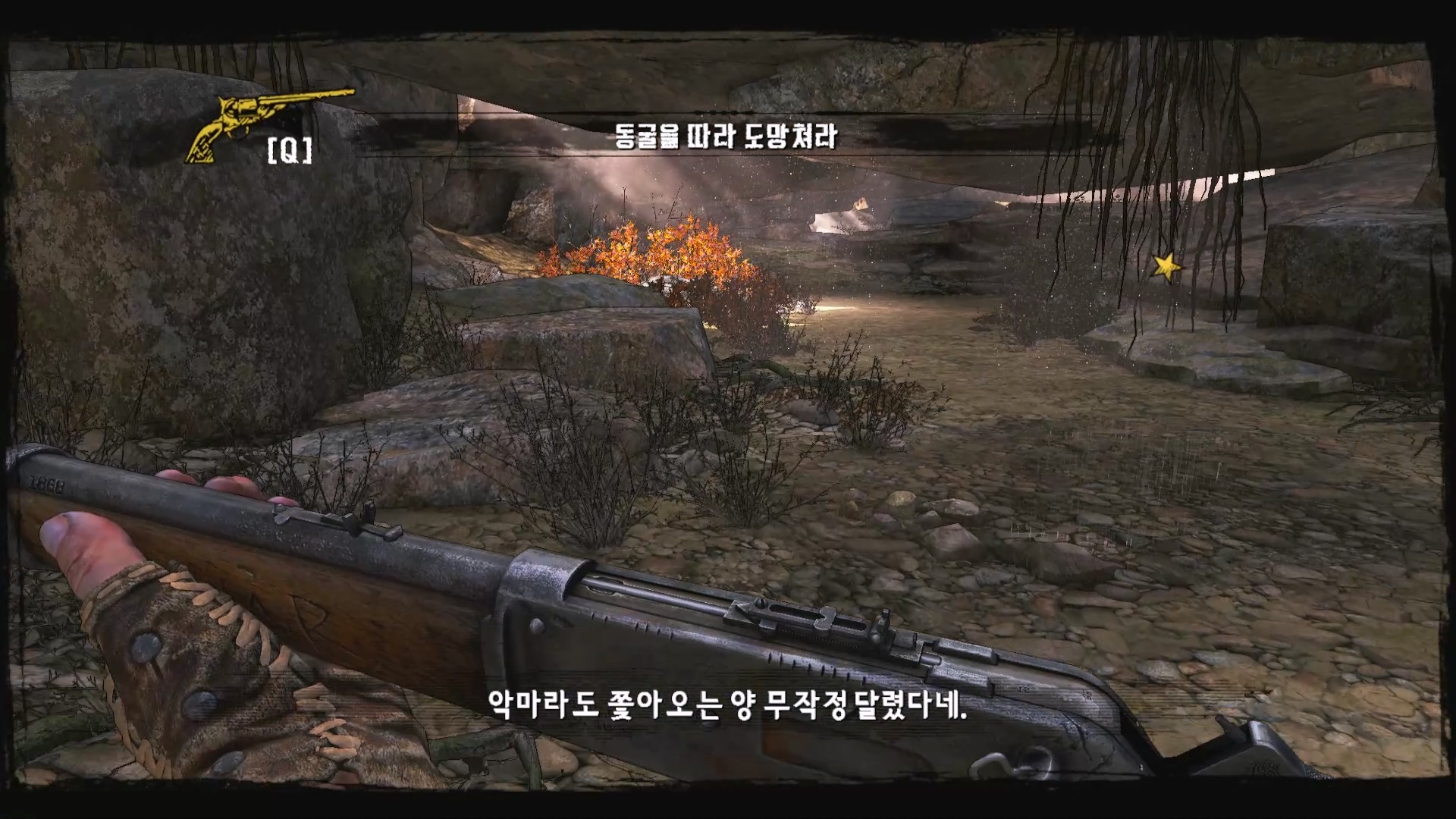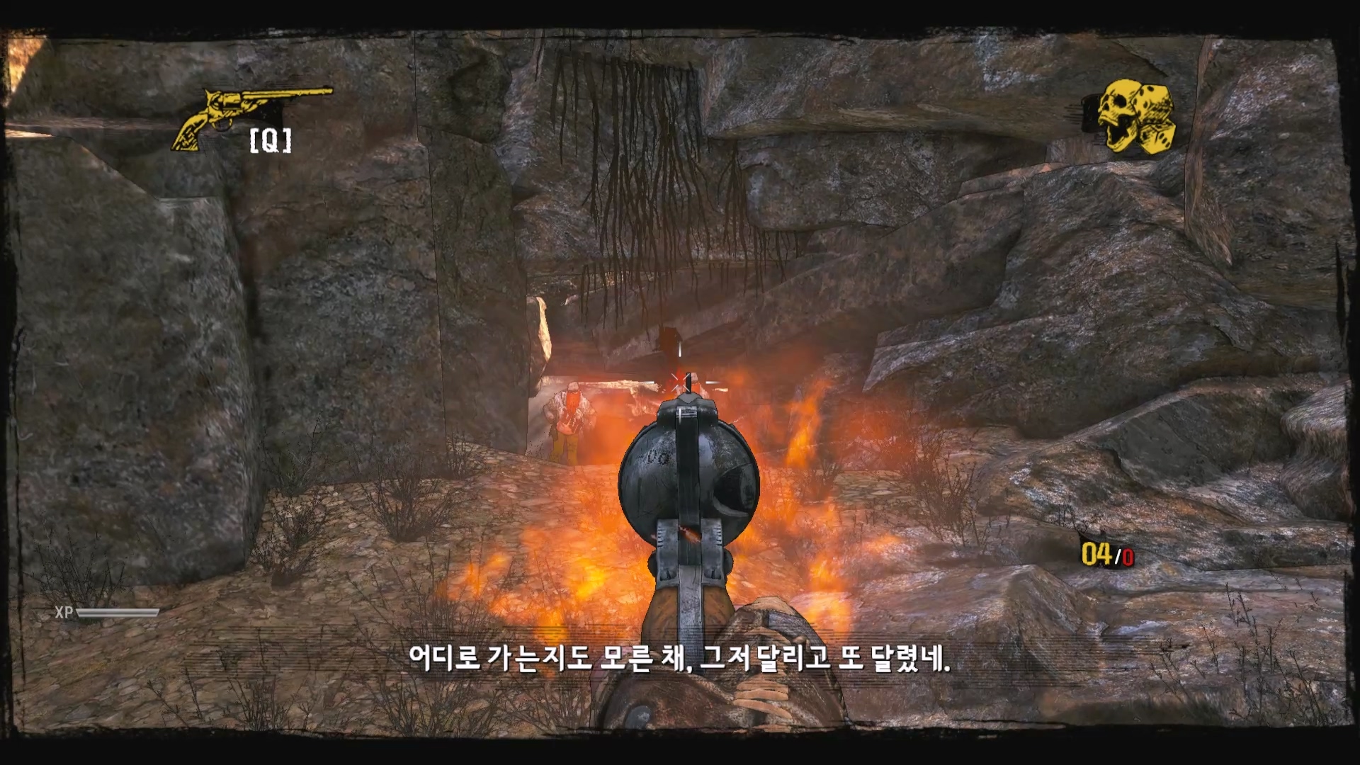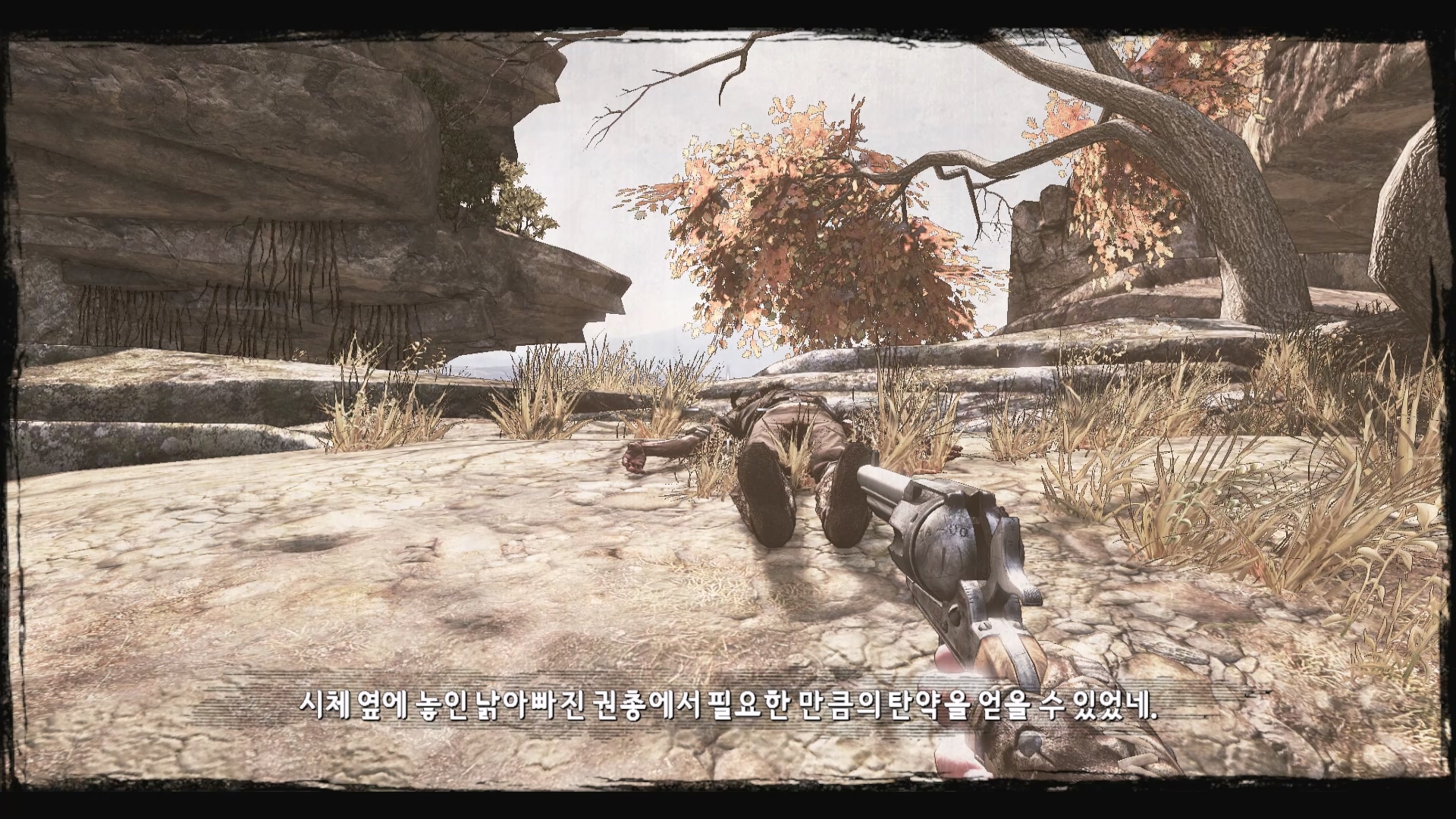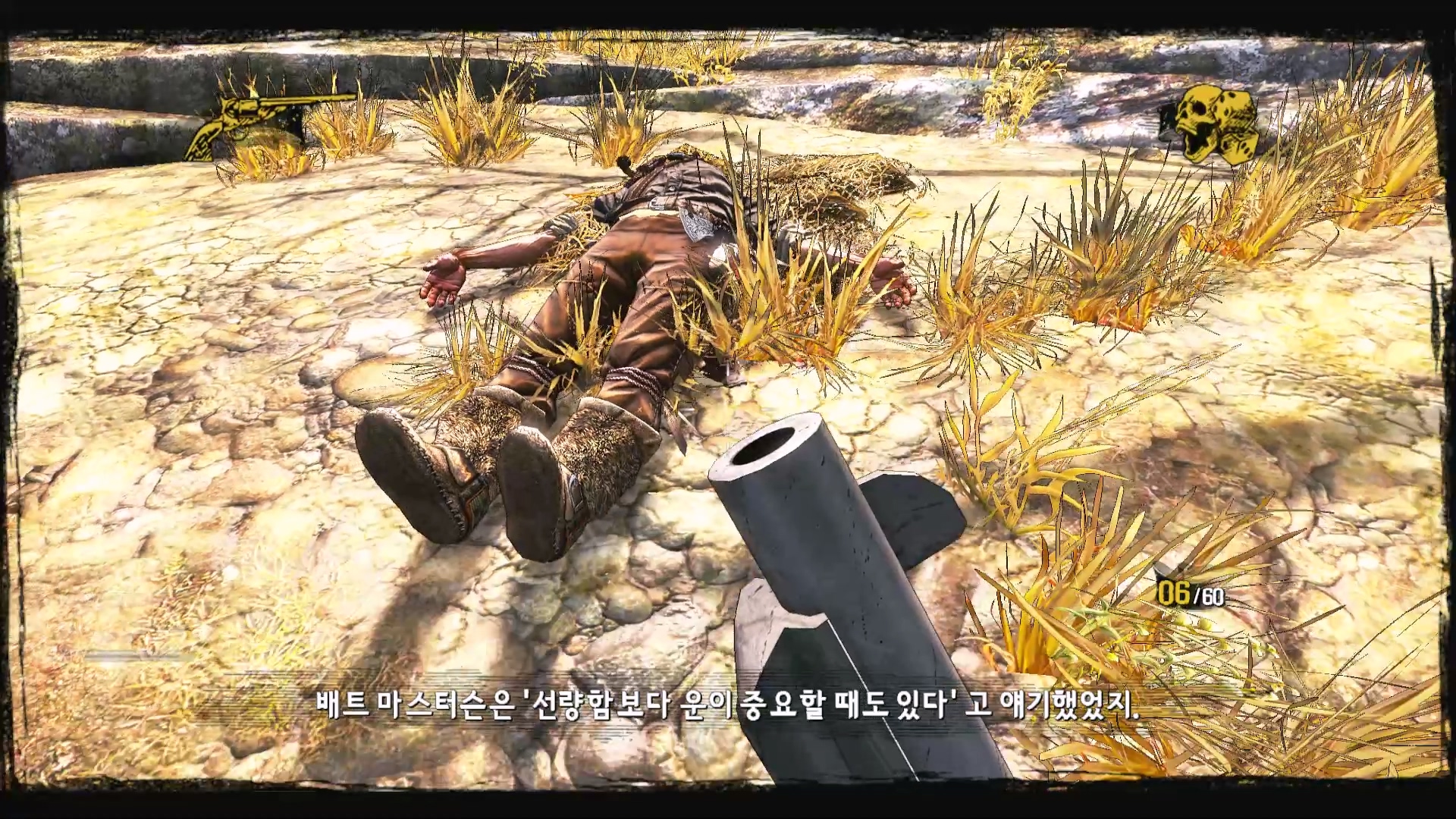 총알이 없어서 도망가는데 인디언의 시체가 나타납니다.