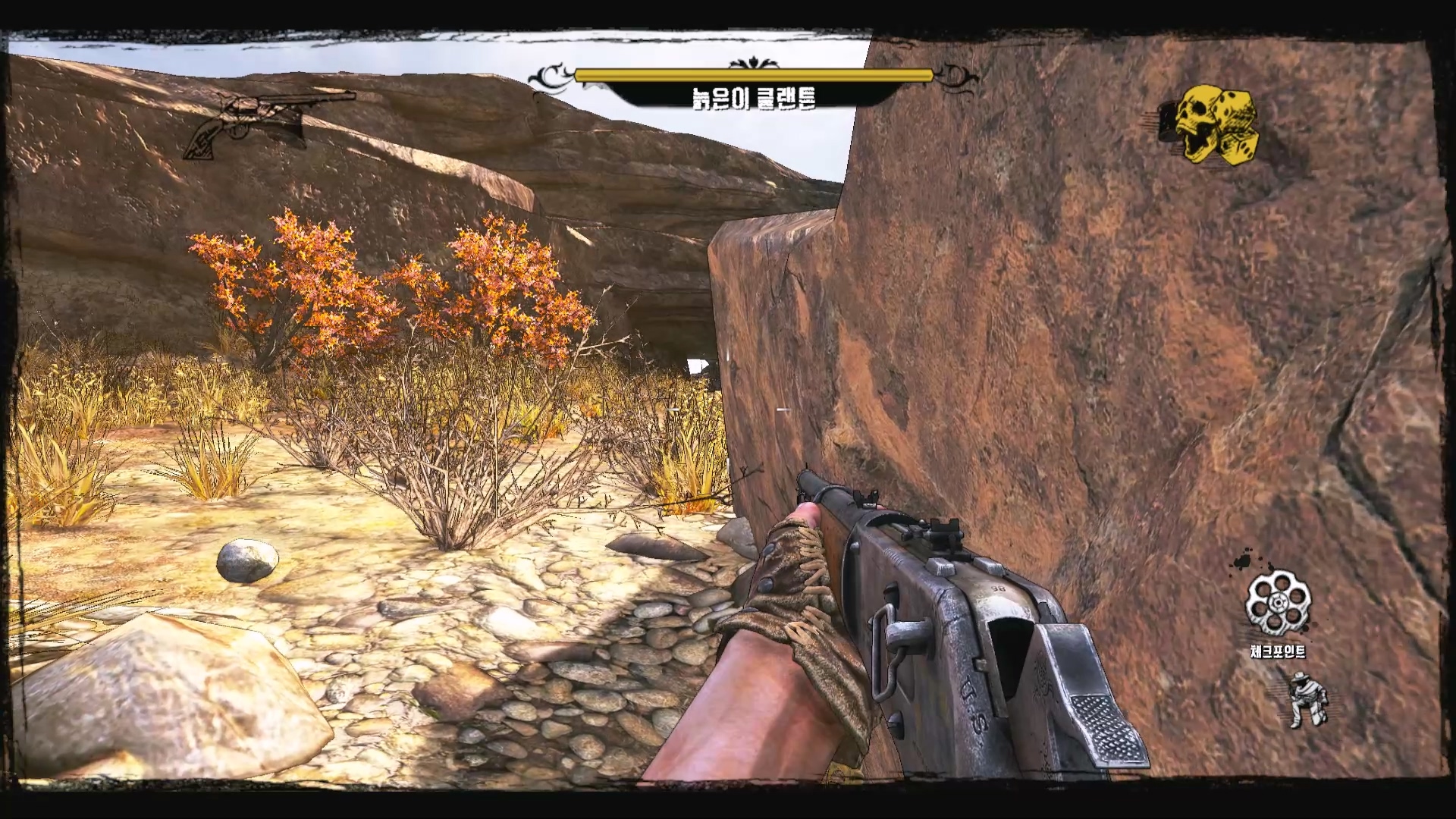 계곡을 빠져나오니 클랜튼이 기관총으로 맞이해주네요.