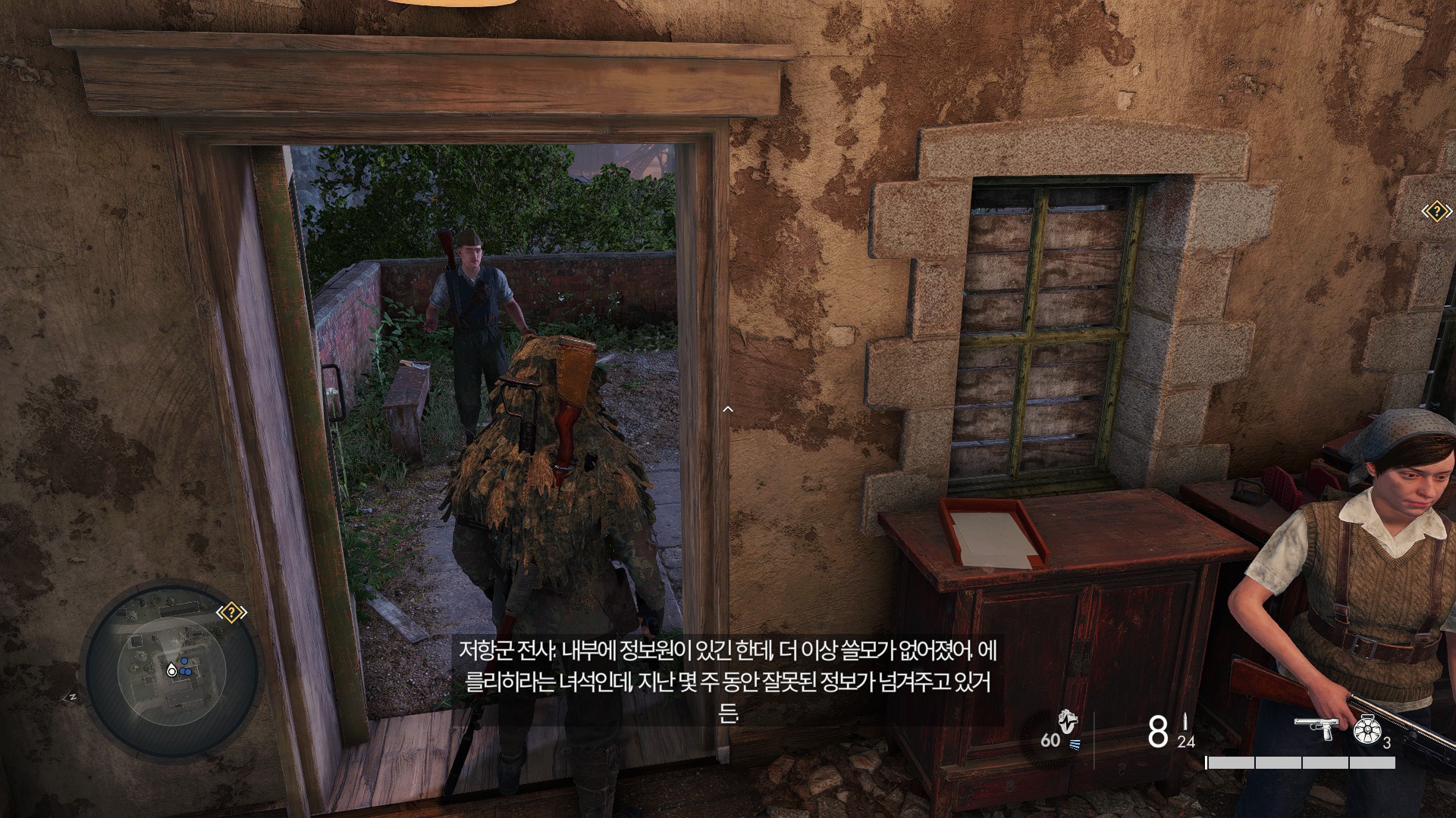 브링핑룸을 빠져나가기전에 장거리 저격이 가능한 적이 있습니다.