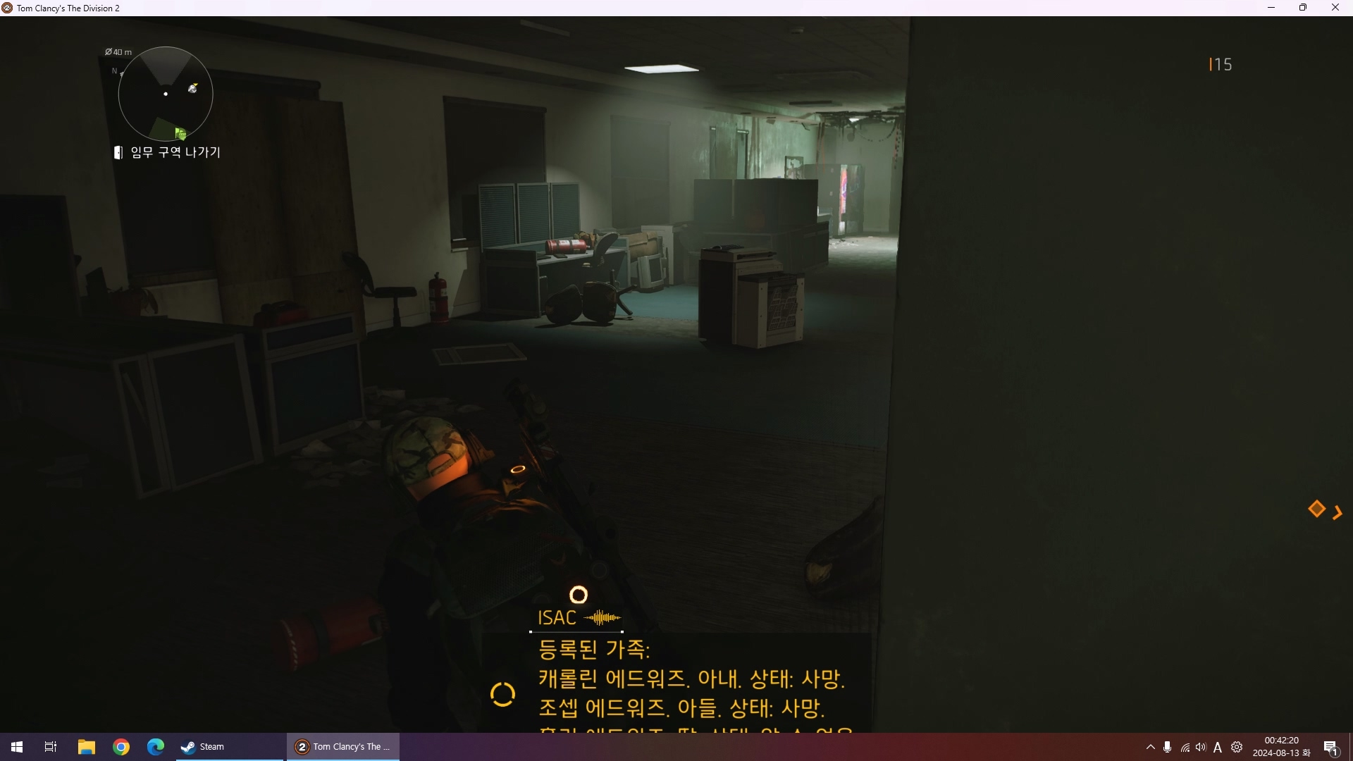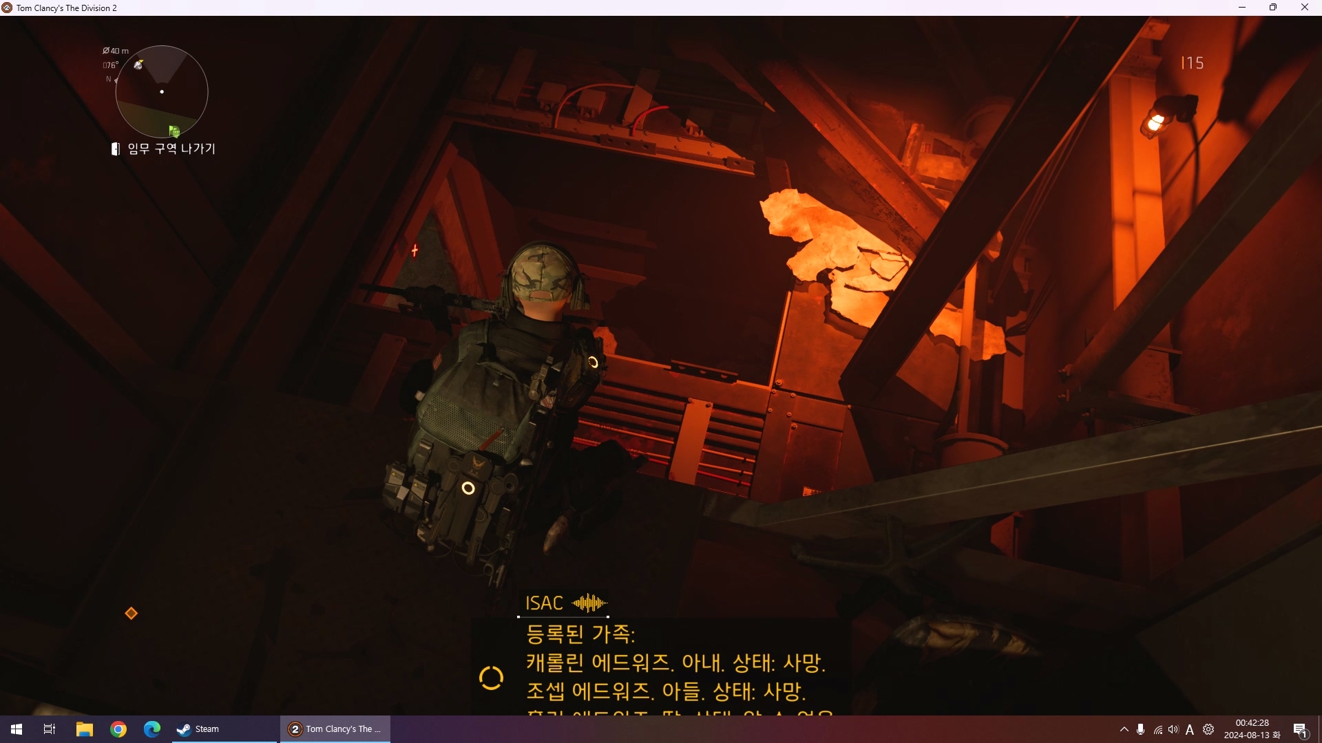 구조신호를 따라 왔더니 디비전 요원들 잡고 다니는 헌터인가 보네요.