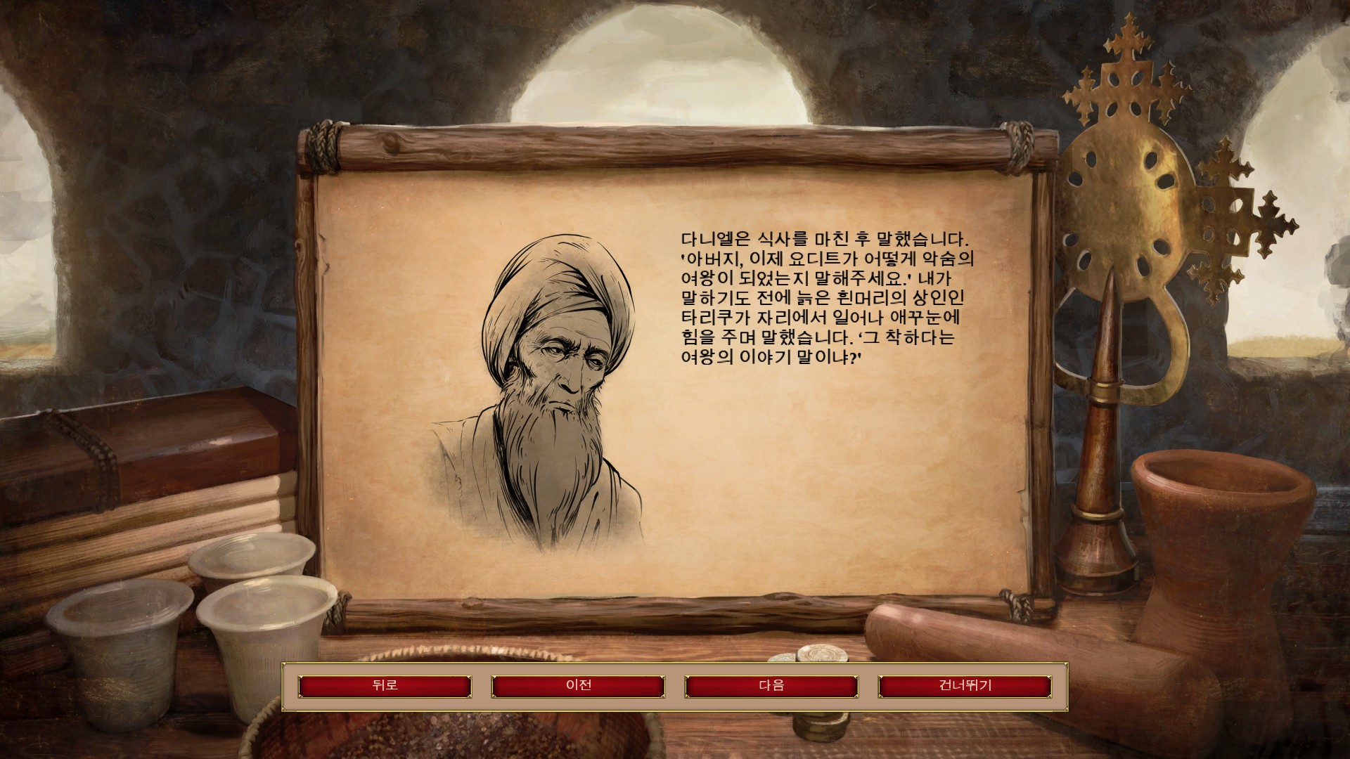 화자는 악숨의 군인이였고 요디트에게 안좋은 감정을 가지고 있었군요.