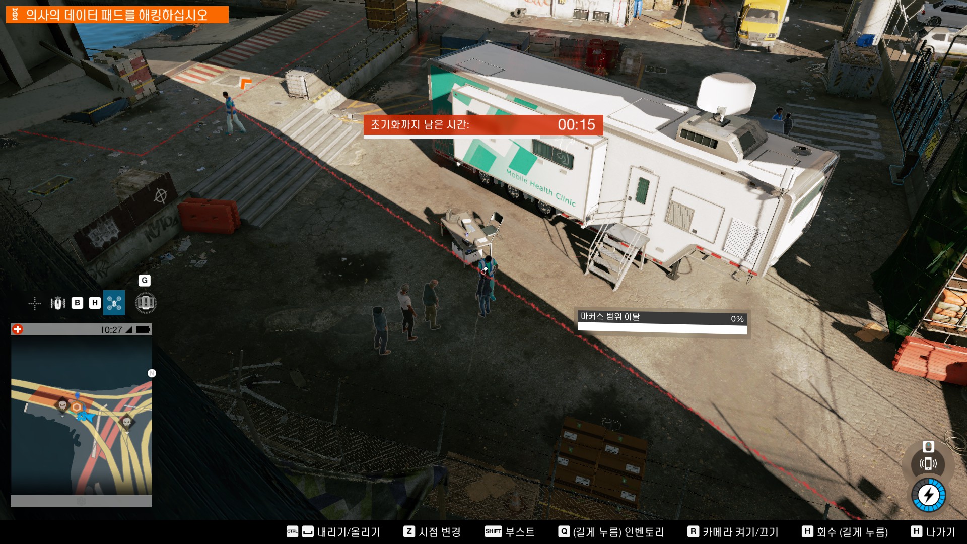진료소 놈들이 뭘하는지 알아내기위해 정보를 해킹합니다.
