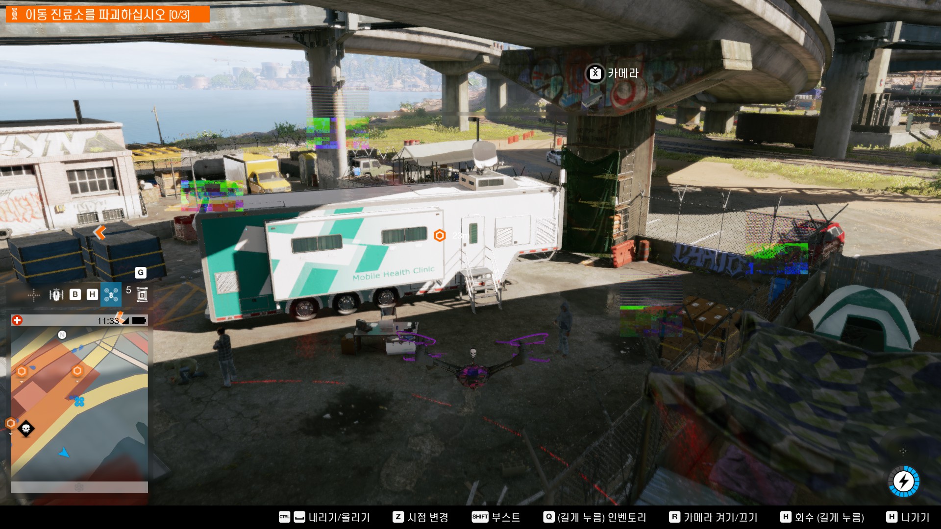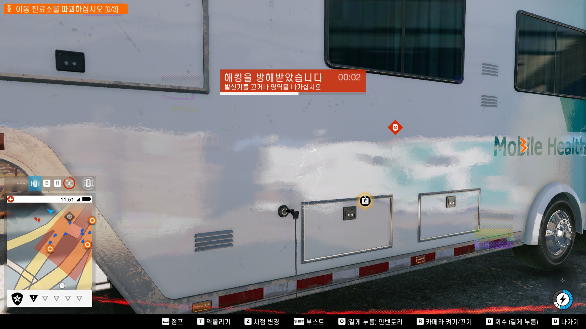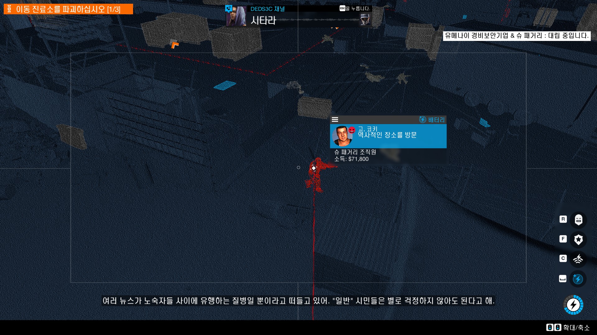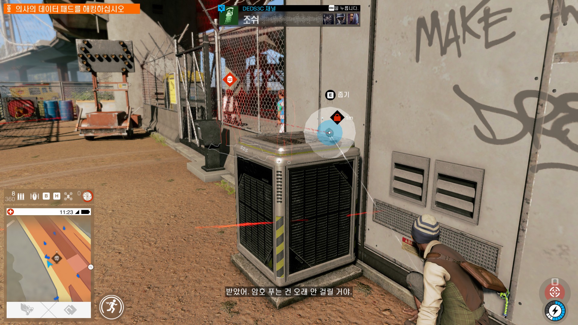 진료소 놈들이 뭘하는지 알아내기위해 정보를 해킹합니다.