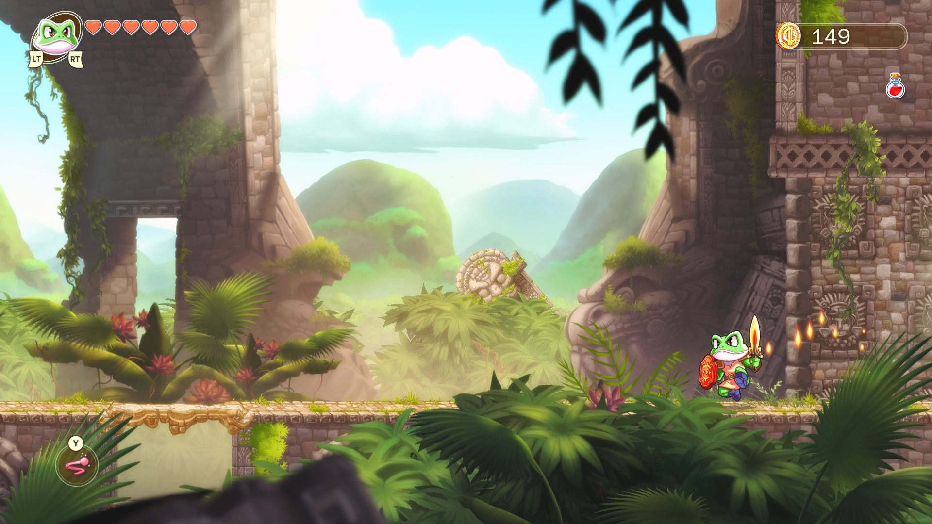 개구리로 변하면 수직으로 올라가는 기믹을 쓸 수 있어서 위로 위로 올라가는 군요.