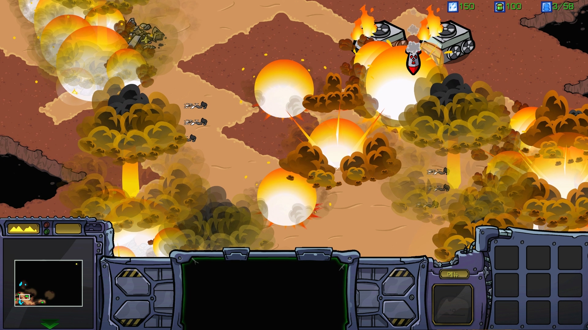 초반부터 핵공격을 하므로 빠르게 마인 업그레이드를 해서 깔아주는 것이 좋습니다.