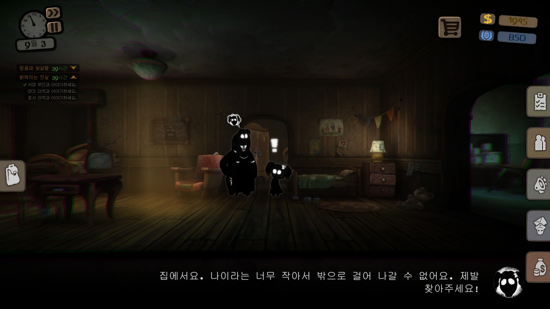 딸의 인형은 약간 랜덤이지만 집을 뒤지면 나옵니다.