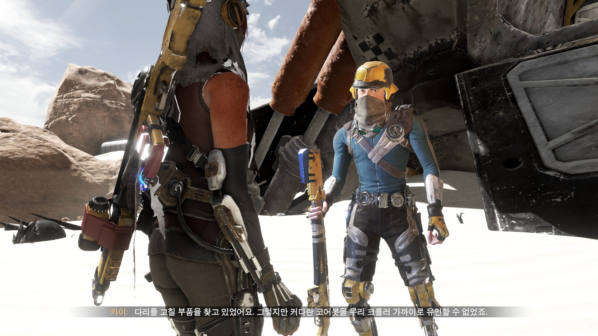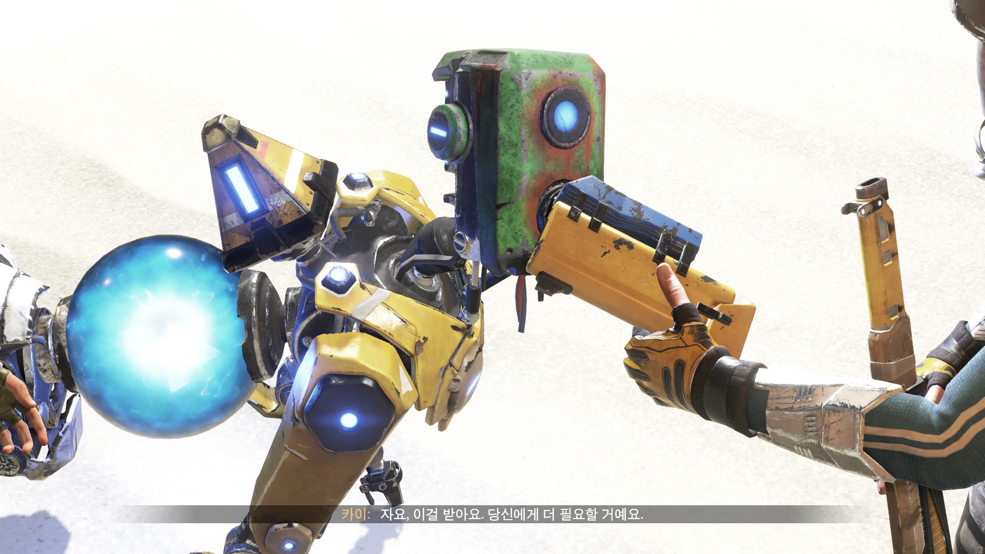 카이가 파란색 총알이 나가는 파츠를 줍니다.