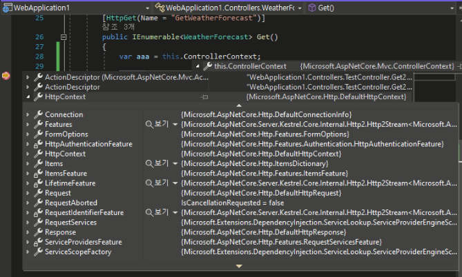 하지만 컨트롤러를 직접 생성하면 'HttpContext'가 null이 됩니다.