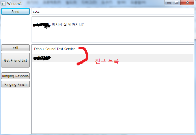 친구목록을 받은 후 선택한 친구에게 메시지를 보내봅시다.
