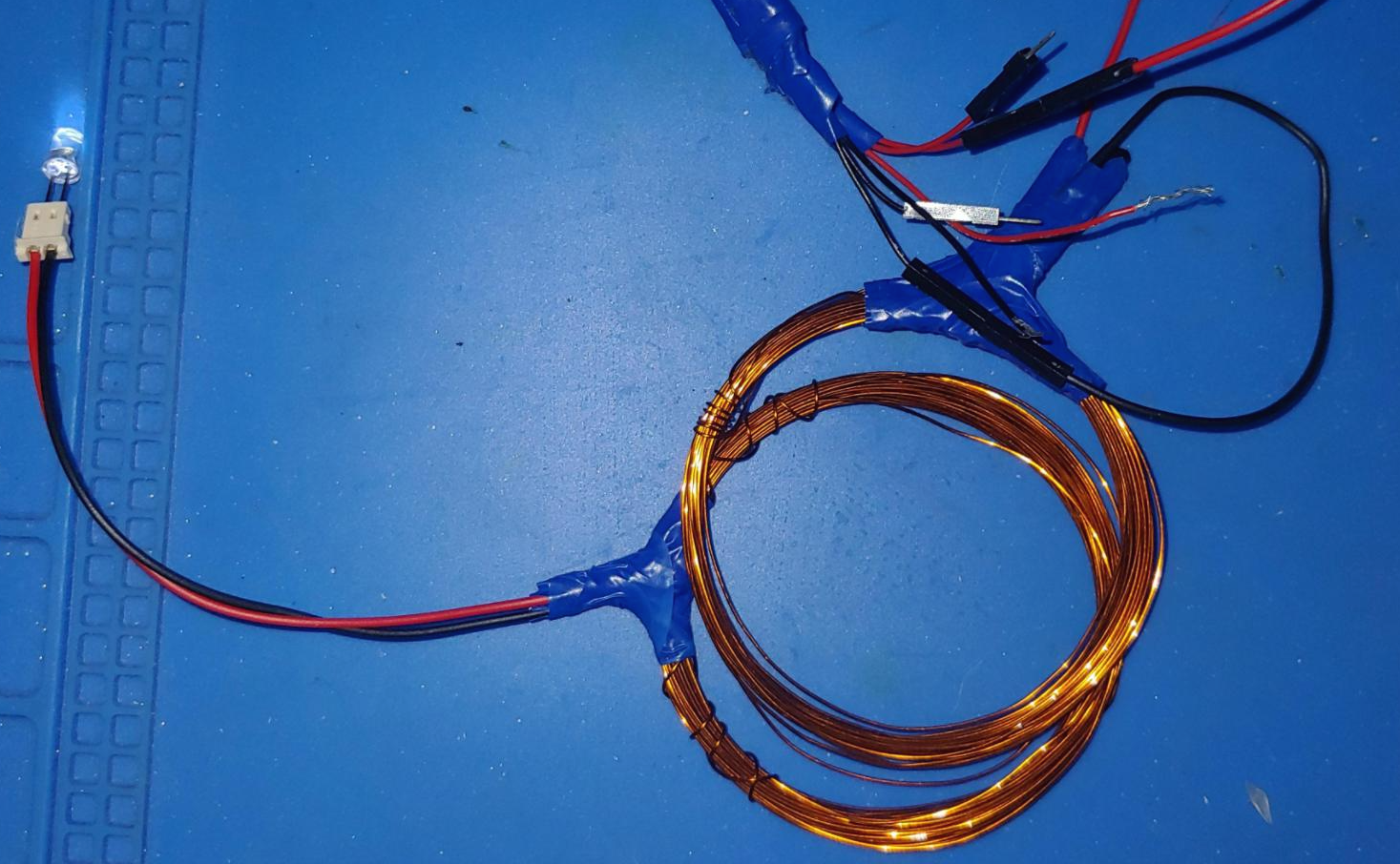 B에 저항을 연결해 주고 감아호은 에나멜 코일의 한쪽 끝을 저항과 연결해 줍니다.