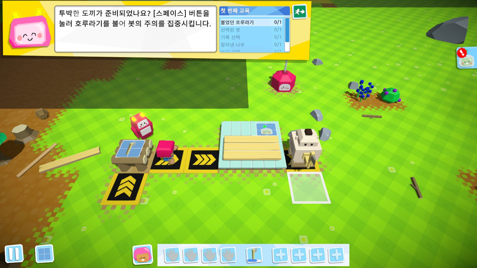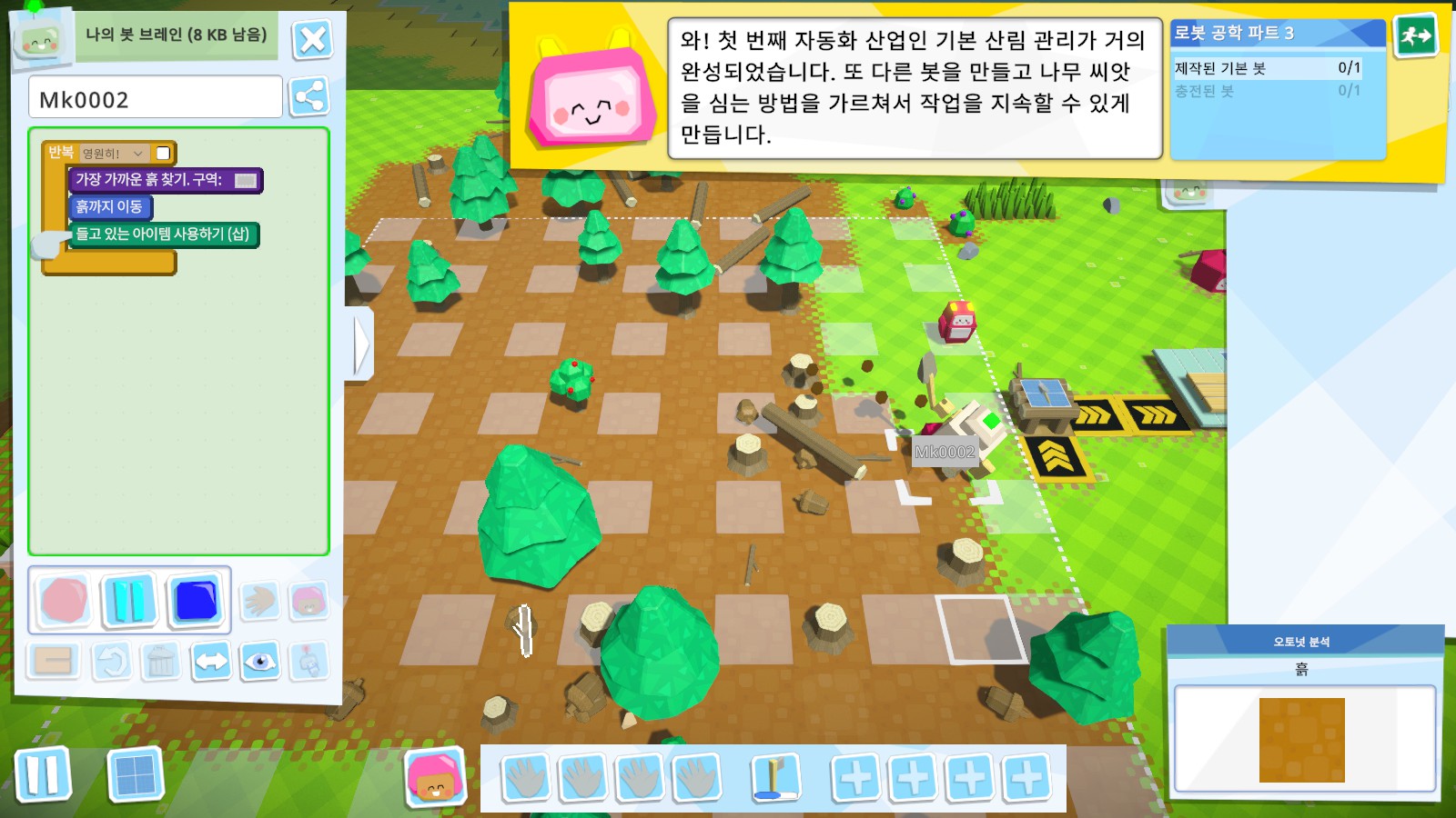 이 게임은 로봇을 만들어서 로봇에 코딩을 해서 자동화하는게 목표입니다.