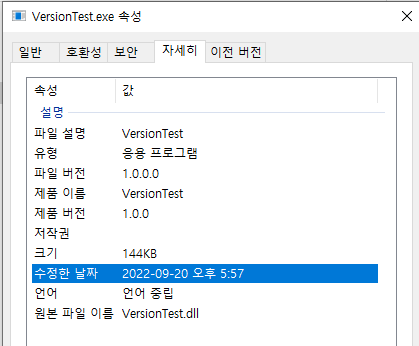 어셈블리 버전(Assembly Version)은 파일정보에 나오지 않습니다.
